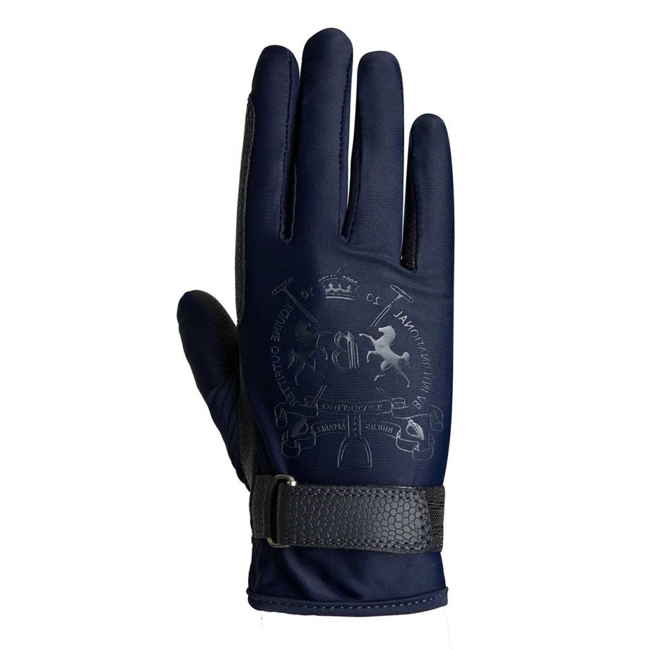 ・とびきりフィット感がすぐれたコンビ素材の乗馬用のグローブ。・しなやかな合皮と通気性のあるストレッチ素材を合わせ、理想的なフィット感と快適な着用感を実現。・格調高いエンブレムロゴをシリコンプリントであしらったエレガントなデザイン。・ベルクロを備えたグローブは着脱がカンタンにできます。