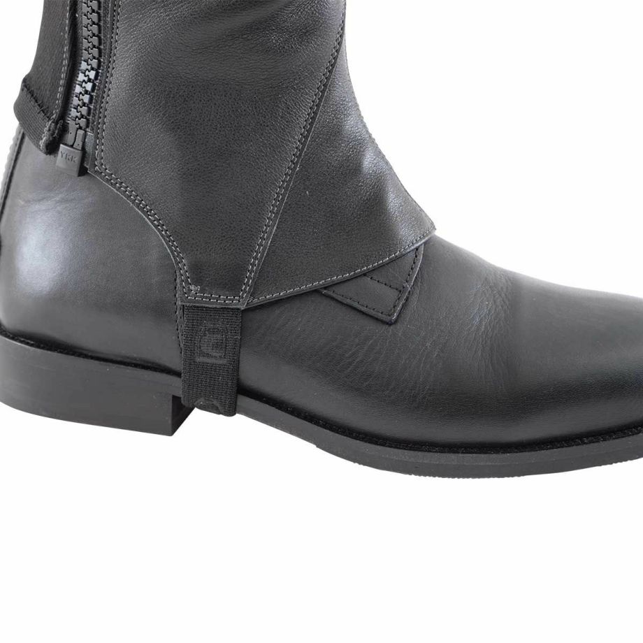 ・素材は最高級の本革を使用しているため、最初からフィット感もバツグン。・しっとりと柔らかいソフトカーフを使用しているので、動きやすく快適。・丈夫で使えば使うほど馴染んでくる本革製。・鞍に当たる部分は滑りにくい素材を使用し、脚の位置をサポート。・ファスナー横に3.5cmほど、ゴムを使用。伸縮性がありピッタリフィットします。・そのため、ふくらはぎ周りはサイズ表の数字より2~3cm伸びます。・ファスナーもしっかり安定感のあるものを使用、上げ下げがスムーズです。・ファスナーは下から上に閉じます。(ジッパーは後ろ寄り、やや外側にあります。)