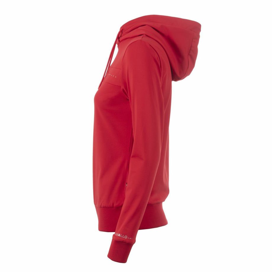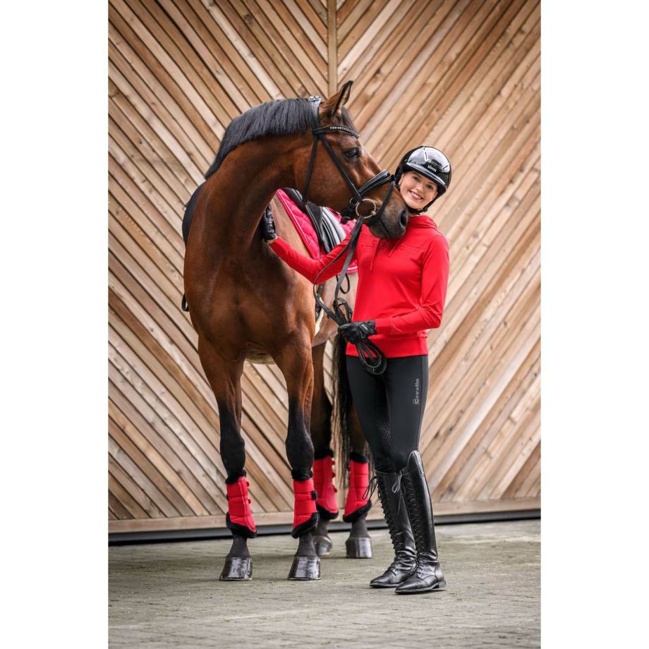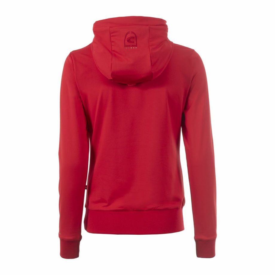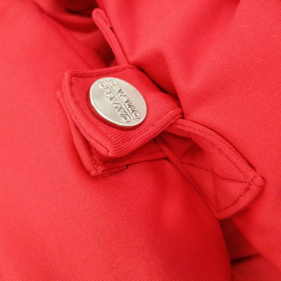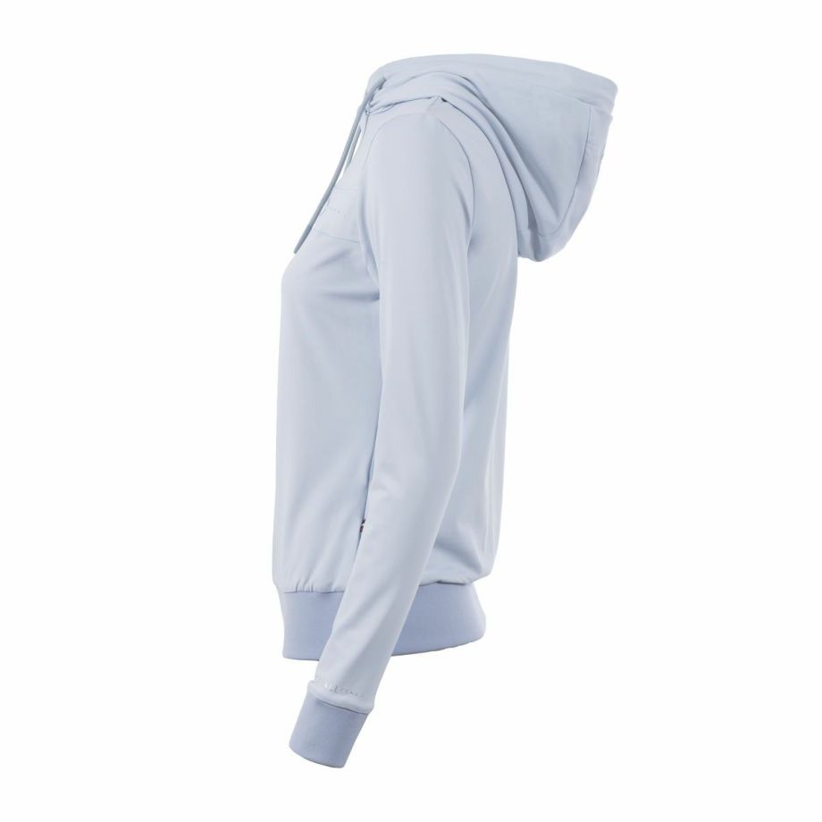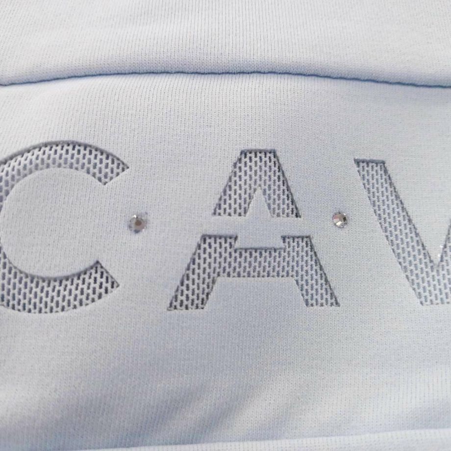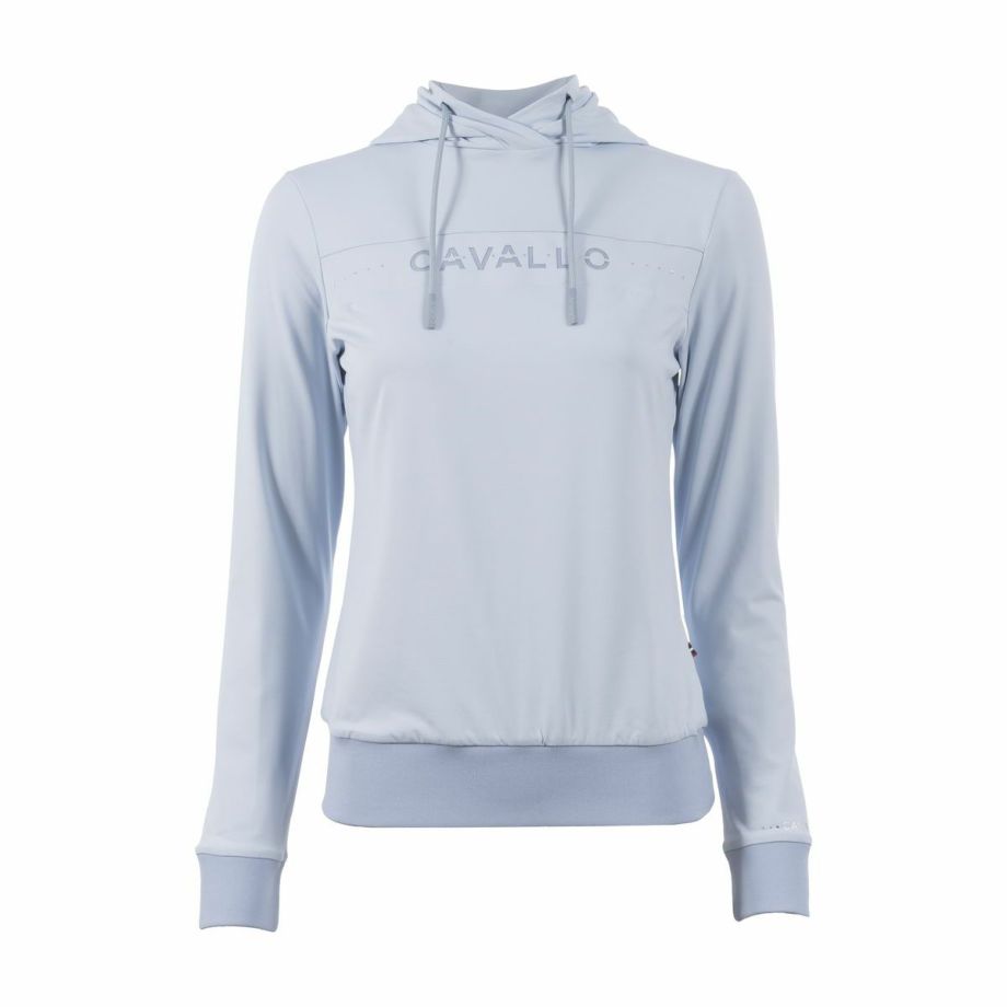 ・わずかに起毛された伸縮性のある機能性生地を使用し、快適な着心地を提供。・袖と裾に伸縮性のあるリブ生地を使用し、動きやすさを追求。・フードは後ろで留められ、ドローストリングでフードのフィット感を調節可能。・ネックラインにはクリスタルストーンで装飾されたCavalloレーザーカットアートワーク。・フード部分には、鐙モチーフのCavalloレーザーカットアートワーク。・レーザーカットアートワークは、透けないように同系色のメッシュと外生地で裏打ち。・汗をかいても蒸れにくい通気性。・汗の臭いを抑える防臭性と汗をかいてもすぐに乾き、ベタつき感を軽減する速乾性。・繰り返しの洗濯や激しい運動にも耐え、洗濯や日光による色落ちの心配がない丈夫な素材を採用。