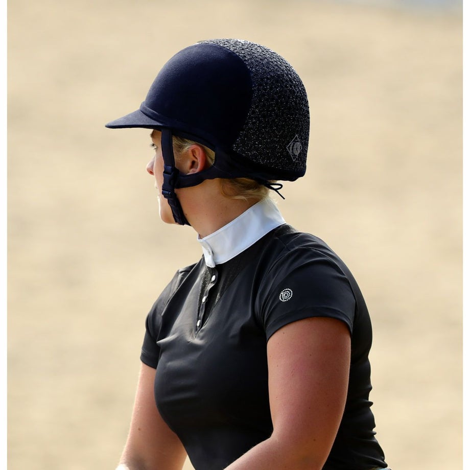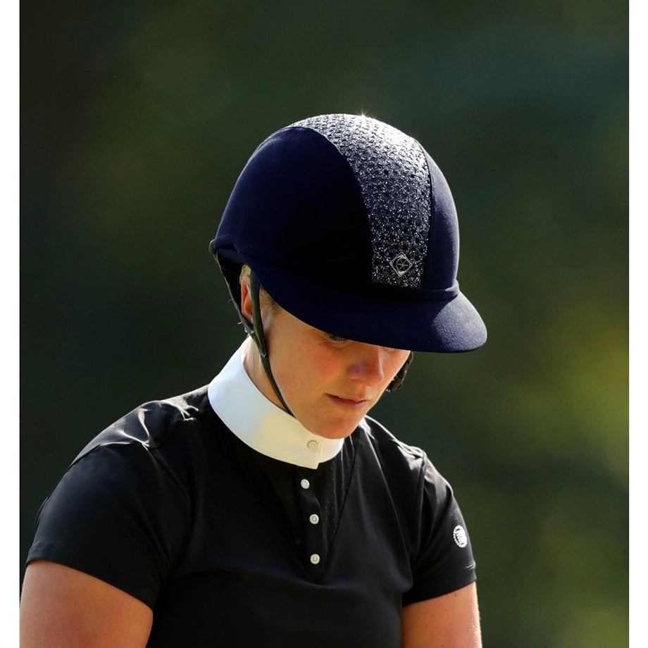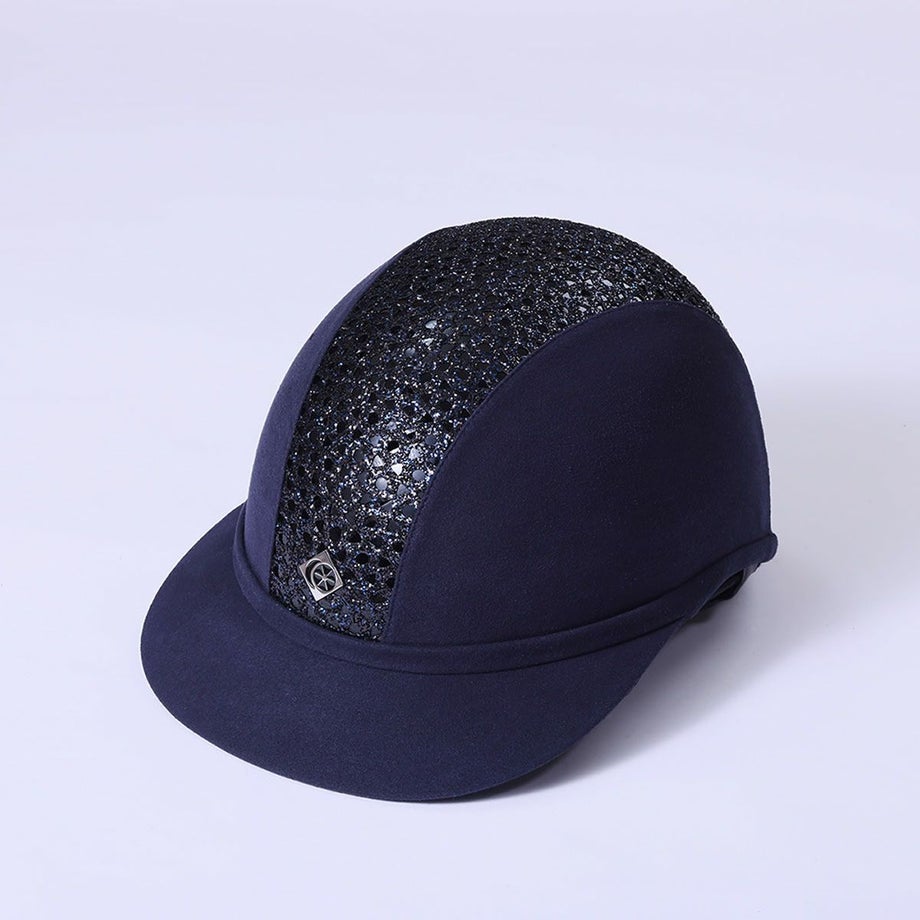 ・キラリと輝くエレガントなCHARLES OWENの乗馬用ヘルメット(ツバ広タイプ)。・ハイレベルな安全性と快適性を求め、革新的なテクノロジーを駆使。・特許を取得したGRpx(R) ハーネスは解剖学的なアプローチにより優れたフィット感と安全性を提供。・洗練されたネイビーのスエード調ヘルメット。・華やかな輝きを添えるスパークリーなセンターパネルがポイント。・前面と背面の中央には12ヶ所の通気孔を備え、通気性がよく快適です。・特別に設計されたツバが広い形状は、顔全体と首の上部までを幅広くカバーします。・あごのベルトにはアタッチメントがあり着脱がスムーズで長さの調整もできます。・ライナーは抗菌・消臭タイプで取り外してお手入れができます。・メンテナンスの手軽さも魅力です。・後部についたコードでサイズの微調整をしてください。【CHARLES OWEN/チャールズ・オーウェン】「より安全な世界のために」安全性の水準を高めることで世界的に有名なチャールズ・オーウェンは、110年以上の歴史を持つ英国王室御用達の乗馬用ヘルメットメーカーです。自社工場で一点一点職人により手作りされたヘルメットは、欧州安全基準VG1、米国安全基準ASTM、英国安全基準PASの3つの規格を満たしています。最先端の技術による快適、安全、そしてファッショナブルなデザインは、世界で活躍する多くのオリンピアンにも愛用されています。