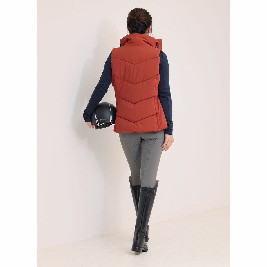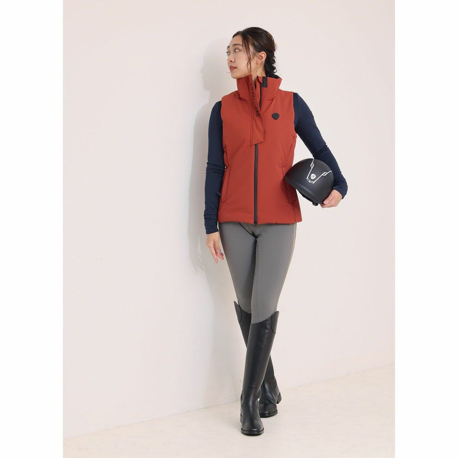 ・動きやすさと美しさを叶える、冬の定番アイテム。・たっぷりの中綿と女性らしいウエストラインが、動きやすさと美しいシルエットを両立。・ロゴ入りのハイネックが首元をしっかりカバー。・上下どちらからも開閉できる2WAYファスナーで、乗馬や屈伸時もストレスなく動ける快適設計。・両サイドにハンドウォーマーポケット、内ポケットもジップ付きで便利。・汗や湿気を外に逃がしやすく、運動中もムレにくく快適な着心地。・しっかりと雨をはじく防水仕様で、悪天候でも安心して着用可能。