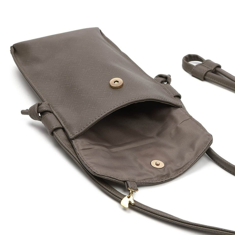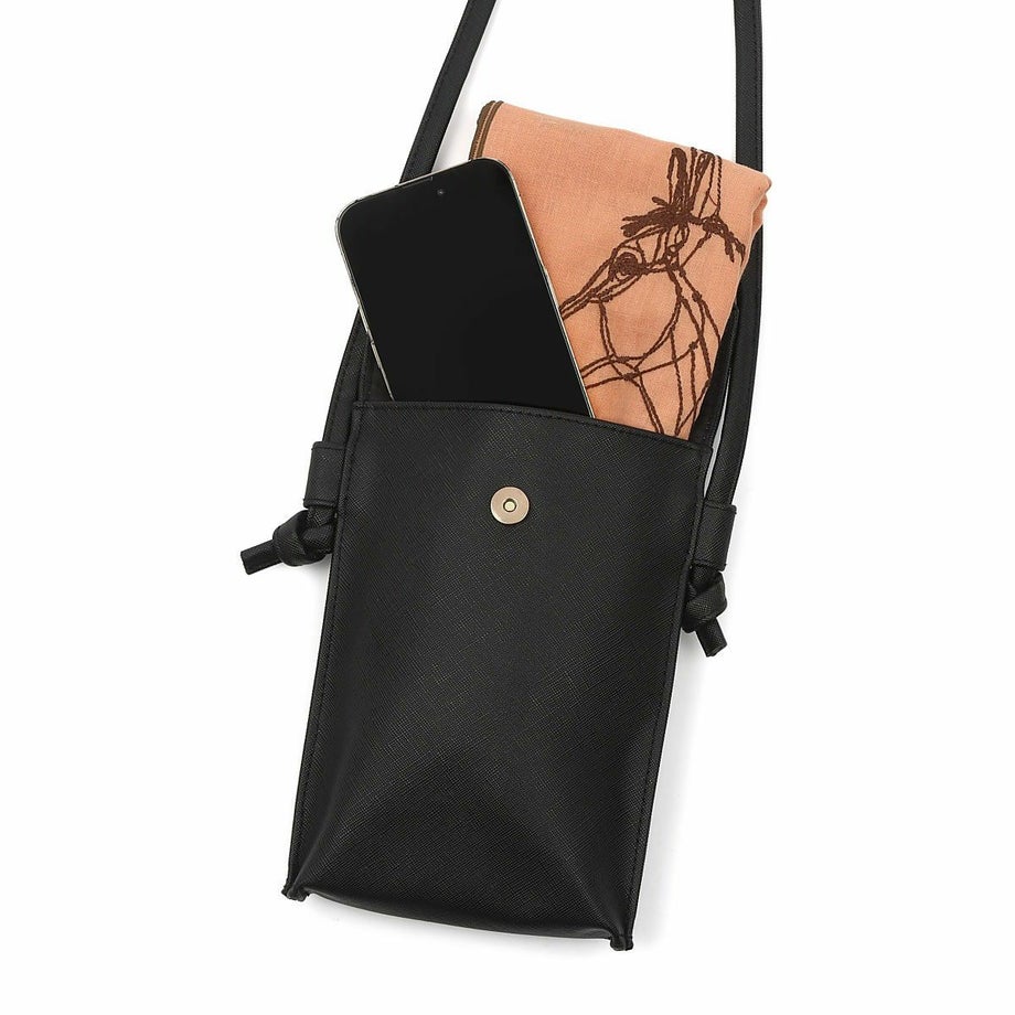 ・スマホや小物の持ち歩きに便利なコンパクトサイズ。・フラップは開閉しやすいマグネットボタン仕様。・フラップ部分にはゴールドロゴを配置、ブランドロゴ入りのチャームがさりげなく個性を添えています。・表地はしっとりとした質感の合成皮革製。・ストラップは長さ調整可能で、肩掛けも斜め掛けも自在。・馬のチャームがアクセントとなり、立体感とおしゃれな雰囲気を演出。・スタンダードなブラックと、グレーでもベージュでもない絶妙な色合いがおしゃれなトープカラー。・普段使いから旅行まで、幅広いシーンで活躍。