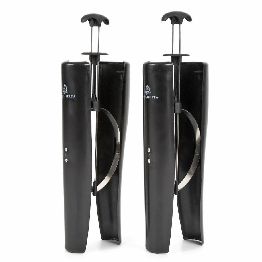 レバー式で抜き差しが簡単なブーツキーパーです。大事なロングブーツの型崩れ防止に。・上部レバーでキーパーの幅が伸縮し、出し入れが簡単です。・内側のバネが本体をしっかりと伸ばすことで、ブーツの筒部分に張りを与えます。・筒部分が空洞なので、乾燥剤を入れることも出来ます。・ロングブーツの筒が倒れないので玄関に置いても、下駄箱に入れてもきれいに保管することができます。・乗馬用だけでなく普段使いにもとても便利。ご自宅の玄関にも1ついかがですか?