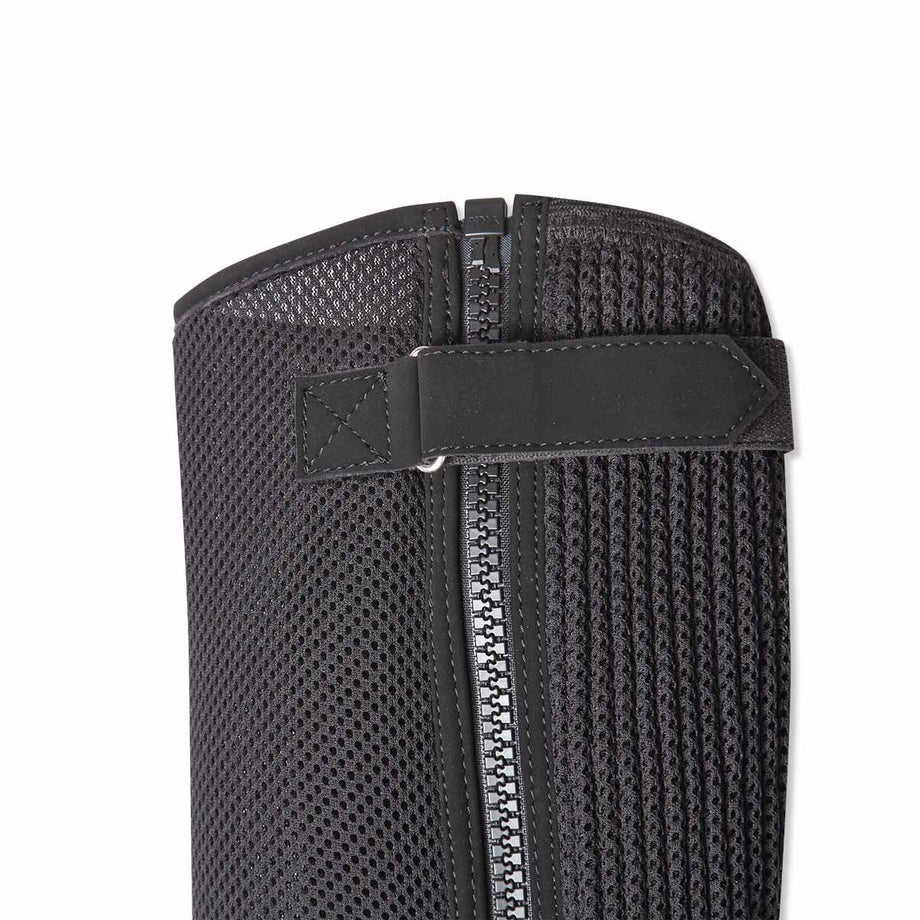 足首の曲げやすいショートブーツ&チャップススタイルは、ビギナーに最適!軽量で通気性の高いナイロンメッシュ生地のチャップスです。内側が滑りにくい合皮スエード生地なので騎乗しやすいです。ふくらはぎ側は伸縮しやすい蛇腹状でぴったりフィットし、脱ぎ履きも簡単です。丸洗いOKだから、汚れやすいチャップスもお手入れラクラクで嬉しい!・軽量で通気性の高いナイロンメッシュ生地のチャップス。内側には丈夫で滑りにくく騎乗しやすい合皮スエード生地を使用。・ふくらはぎ側は伸縮しやすい蛇腹状でぴったりフィット、装着しやすい!・丸洗いOKなので、お手入れも簡単です。・乗馬ビギナーや、耐久性にはこだわらずお値段重視の方におすすめです。