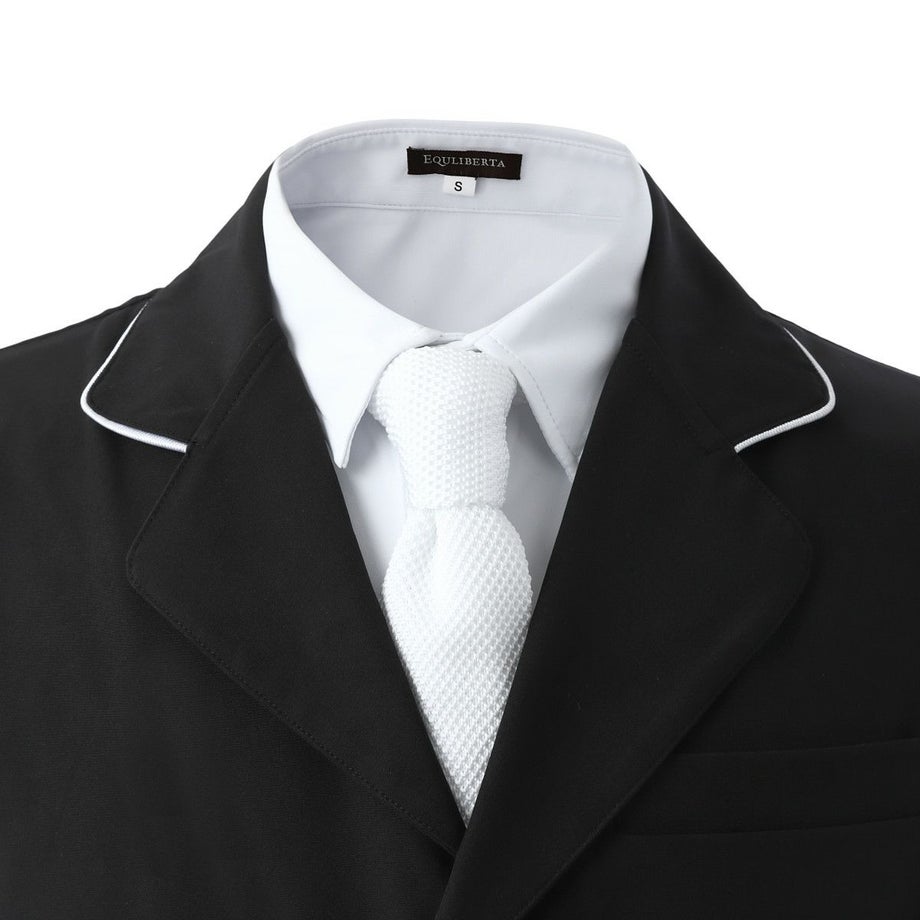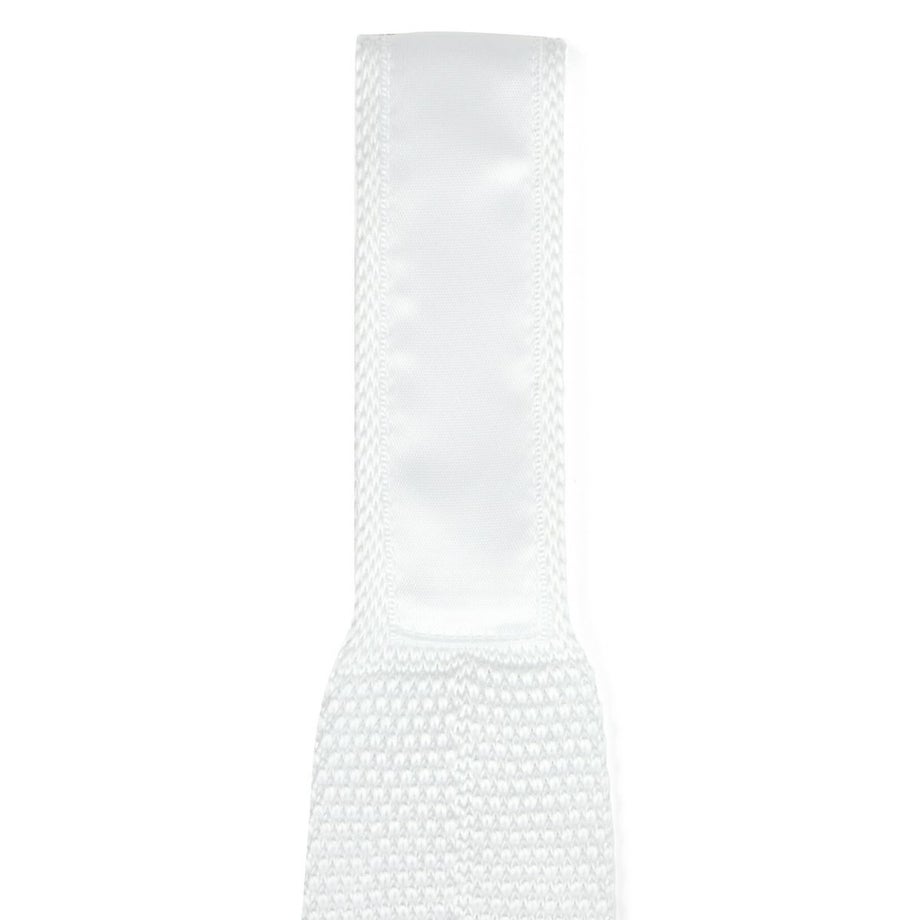 ・競技で着用するショータイの定番、白のニットタイです。・美しい飾り編みのタイが胸元を上品に飾りつけて華やかに。・通気性が高く、ふわりとした肌触りです。・首周りの裏地に滑りやすい生地が貼られているので調整しやすいです。・汚れが目立ちやすい白タイだから、ご家庭でクリーニングできるのも嬉しいポイント。・見た目もおしゃれなので、パーティーなど乗馬以外にも使えるネクタイです。