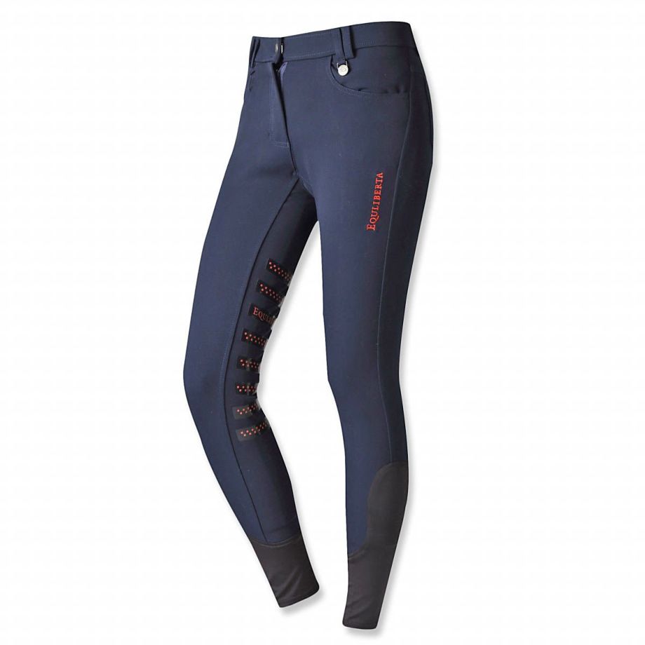 ニーグリップキュロットで迷ったらこの商品。使いやすい定番デザインだから1枚は持っておきたいアイテムです。シリコンの強力なグリップ力で、膝だけでも十分に姿勢を安定できるニーグリップは、激しい動きもきっちりサポート。動きやすさを重視した装飾の少ないシンプルなデザインですが、刺しゅうやシリコンのワンポイントがデザインを引き締めています。・人気のシリコングリップを採用従来の合皮タイプに比べ、グリップ力が大幅に向上し、ごわつきがなく、伸びやすく、通気性や吸汗性も高いシリコンタイプは、段違いの使いやすさと履き心地。ヒザ部分のシリコンは様々な形状をテストし、障害飛越などの激しい動きでもきちんと身体をホールドできる強めのグリップに調整しました。・素材へのこだわり生地やボタン、ファスナーなど全ての素材にこだわりました。ボタンは騎乗に適したものをドイツから取り寄せ。生地は専門機関で百貨店並みの厳しい試験に合格したものです。・日本人の騎乗に最適化されたシルエット熟練デザイナーとパタンナーが、生地の特性を考慮して型紙からデザインしたキュロットは、姿勢の美しさと動きやすさを両立しました。ウエストのフロントが浅くバックが深いデザインは、騎乗時の座り込んだ姿勢でウエストをきっちりカバー。股部分を工夫してまたがりやすく、ひざ部分にゆとりをもたせ曲げやすくし、騎乗のしやすさを追及したシルエットに仕上がっています。・高い縫製技術を活かしたフィット感生産はヨーロッパ向けキュロットを手がけるメーカーが協力。長年培われた技術が活かされた縫製は耐久性とフィット感が抜群です。・足首周りはストレッチ素材で快適足首周りにストレッチ素材を採用。ふくらはぎまでストレッチ素材を伸ばすことで抜群のフィット感と快適な履き心地を実現しました。※ジュニアサイズの刺しゅう・シリコンプリントはカラーがレディースサイズと異なります。詳しくは画像をご覧下さい。※フロントボタンはレディースサイズは右前、ジュニアサイズは左前となります。