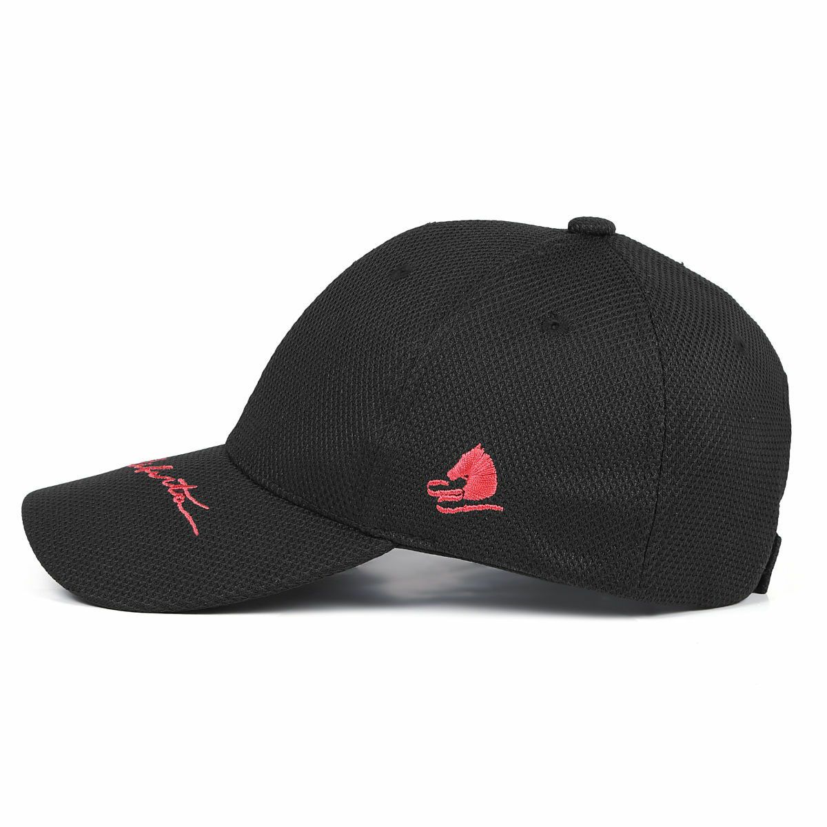 ・通気性が良く、暑い日でも快適なメッシュ素材。・生地は薄すぎずオールシーズン使える便利なキャップ。・フロントのレターロゴ、サイドのホースロゴの刺繍が高級感を演出。・日焼け対策になるツバが長めのタイプ。・キャップの後ろでサイズの微調整が可能。・どんなスタイルにも合わせやすい、定番のブラックとネイビーの2色展開。・シンプルで洗練されたデザインは、普段使いにもアウトドアアクティビティにもマッチします。