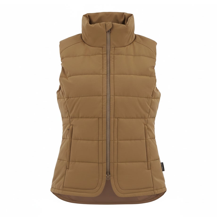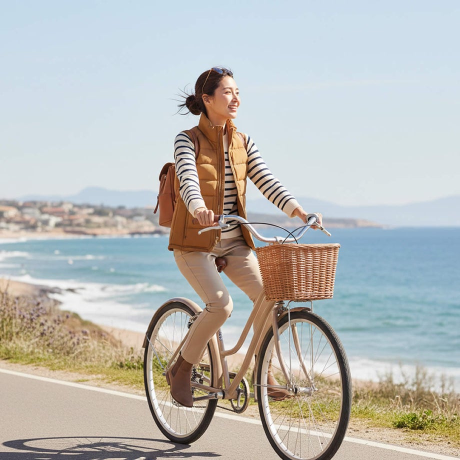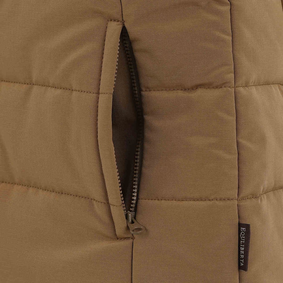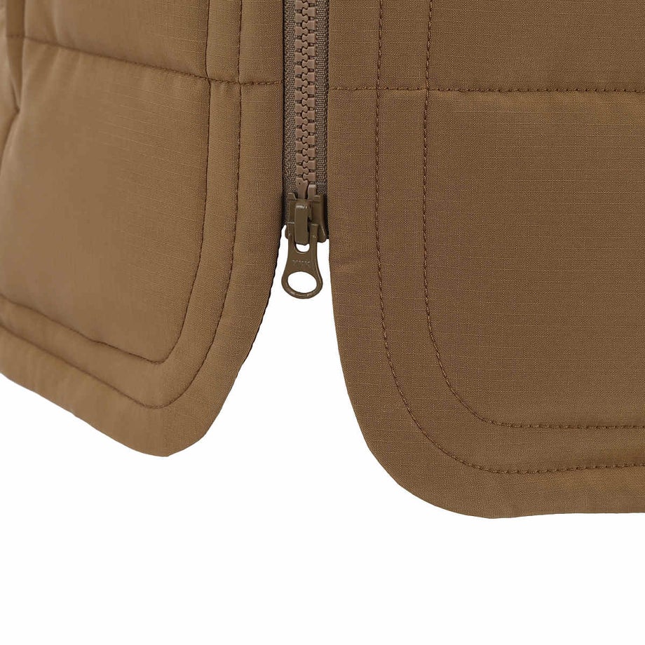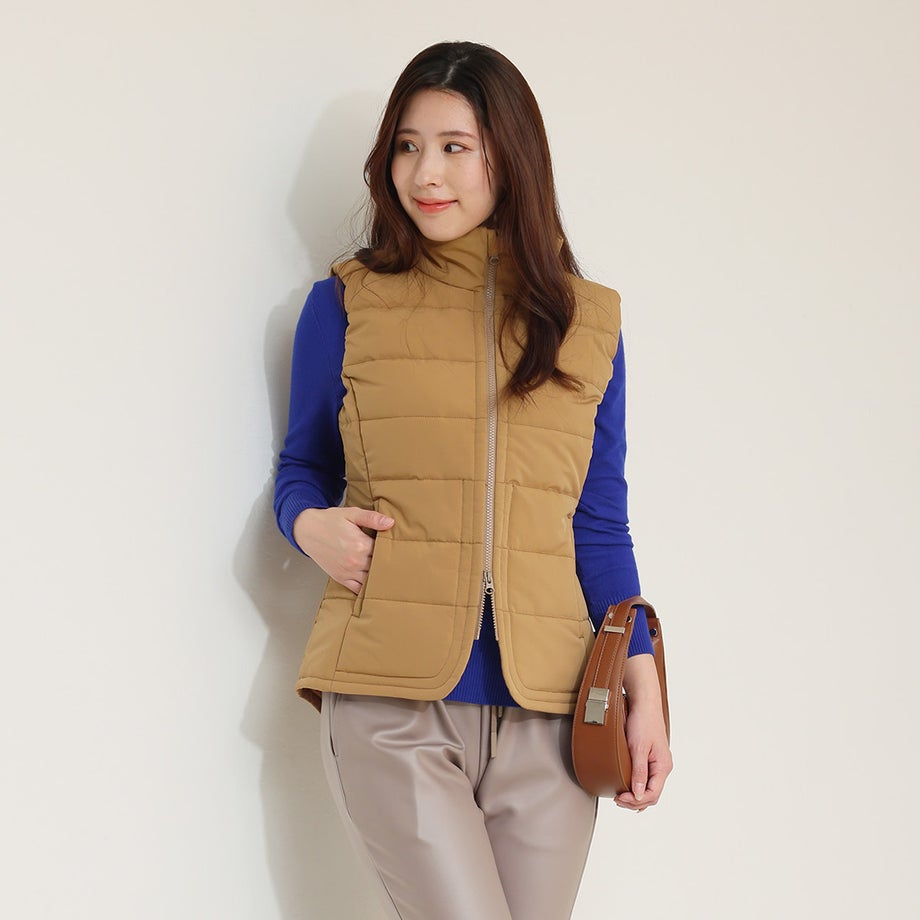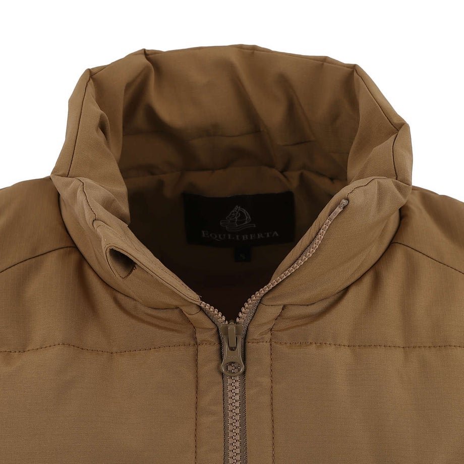 「中綿入りなのに、驚くほどスマート」3シーズン、着ぶくれ知らずで美しく。計算し尽くされた絶妙ボリューム。■ 「3シーズン」フル活用。季節をまたぐ、計算されたボリューム感。春・秋・冬と、長い期間使い倒せるベストを目指しました。 肌寒い時期には主役として、真冬にはインナーとして。 「薄すぎず、厚すぎない」。 中綿入りでありながら、季節を選ばないこの「絶妙な厚み」こそが、このベストが1年を通して重宝される最大の理由です。■ 「中綿=太って見える」を、緻密な設計で解決。中綿特有の温かさを保ちながら、着ぶくれを最小限に抑えるため、綿の量をパーツごとに細かく調整しました。薄手でスリムな設計にこだわり抜いたことで、ジャケットの中に着込んでも、外からのシルエットは驚くほどスマート。「暖かいのに、着痩せして見える」。そんな理想のバランスを、緻密なステッチデザインとあわせて実現しました。■ 顔周りを凛と見せる「三日月台衿(みかづきだいえり)」首元には、衿の形を立体的にキープする「三日月台衿」を採用。美しい立ち上がり:衿の土台にカーブをつけることで、ジップを開けても閉めても形が崩れず、顔周りをスッキリ見せます。柔らかな肌触り:衿端を「中縫い仕立て」にすることで、首への当たりを優しく。防寒性を高めつつ、上質な着心地を叶えます。■ 乗馬ブランドならではの、機能美と動きやすさ。「アクティブに動けて、かつ美しい」ことが、開発時のこだわりです。可動域の確保:アームホールを低めに設計。厚手のトップスの上からでも脇がもたつかず、腕の上げ下げもストレスフリー。タフなスペック:撥水・防風・防汚加工を施したリップストップ生地。汚れを気にせず、デイリーから乗馬シーンまでタフに使い回せます。・撥水 多少の雨や雪なら騎乗できます。・防風 冷気を遮断し、暖かさをキープ。・防汚 汚れが付きにくく、落ちやすい。洗練されたライン:前裾は角を落とした曲線ラインで女性らしく。座った時もお腹周りがもたつかず、美しいシルエットを保てます。後ろ身頃は長めの設計で、気になる腰回りをしっかりカバーします。
