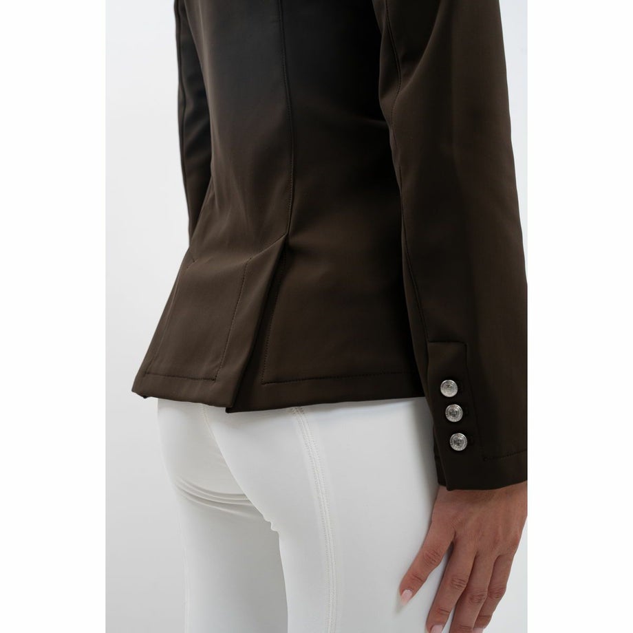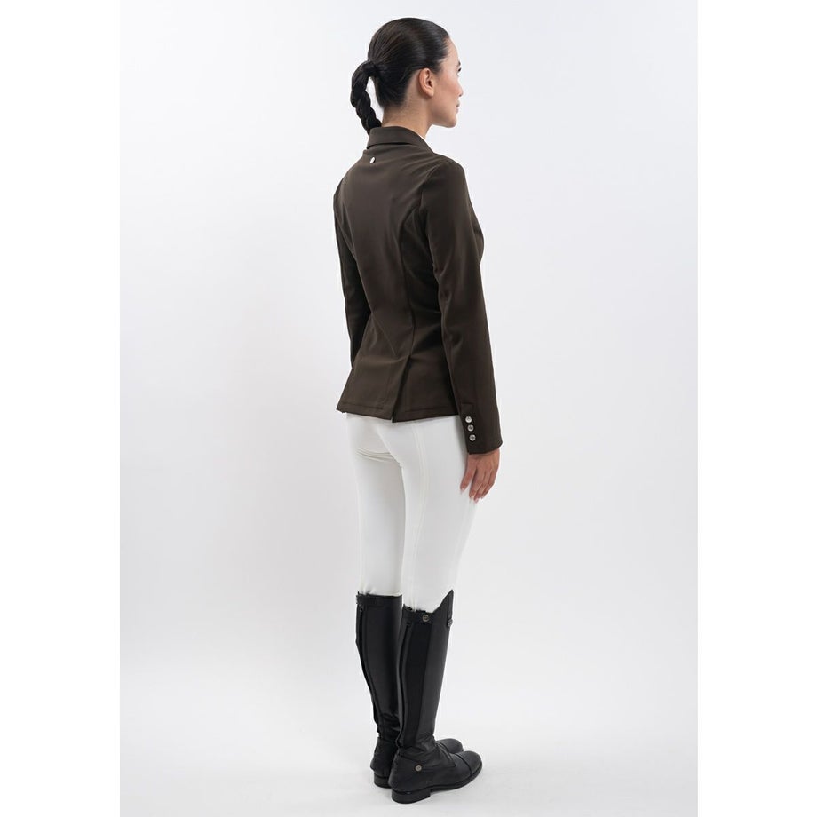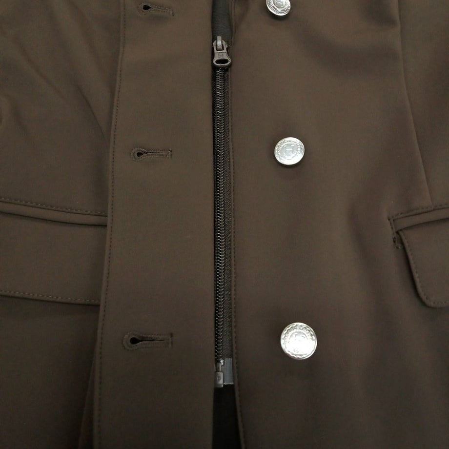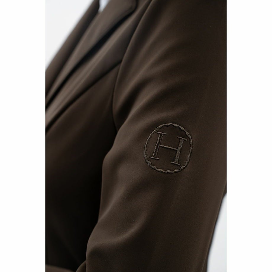 ・通気性のあるRider Stretch素材で、動きやすく快適な着心地。・ウエストを美しく見せるシェイプされたシルエット。・フロントはジップ+ブランド刻印入りの3つボタン仕様。・袖口と前面にHarcourのロゴ刺繍が上品なアクセント。・背面の2スリットで、騎乗時も美しいシルエットと動きやすさを両立。・秋冬の雰囲気に合う、控えめで上品なカラー。・保管に便利なガーメントバッグ付き。