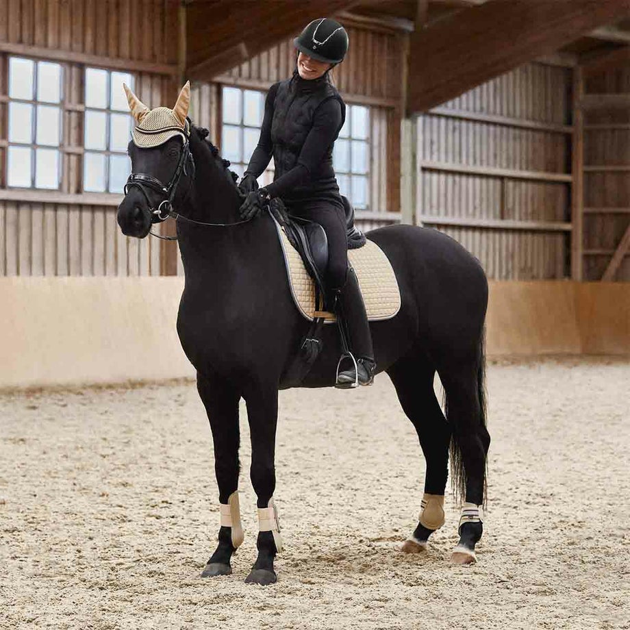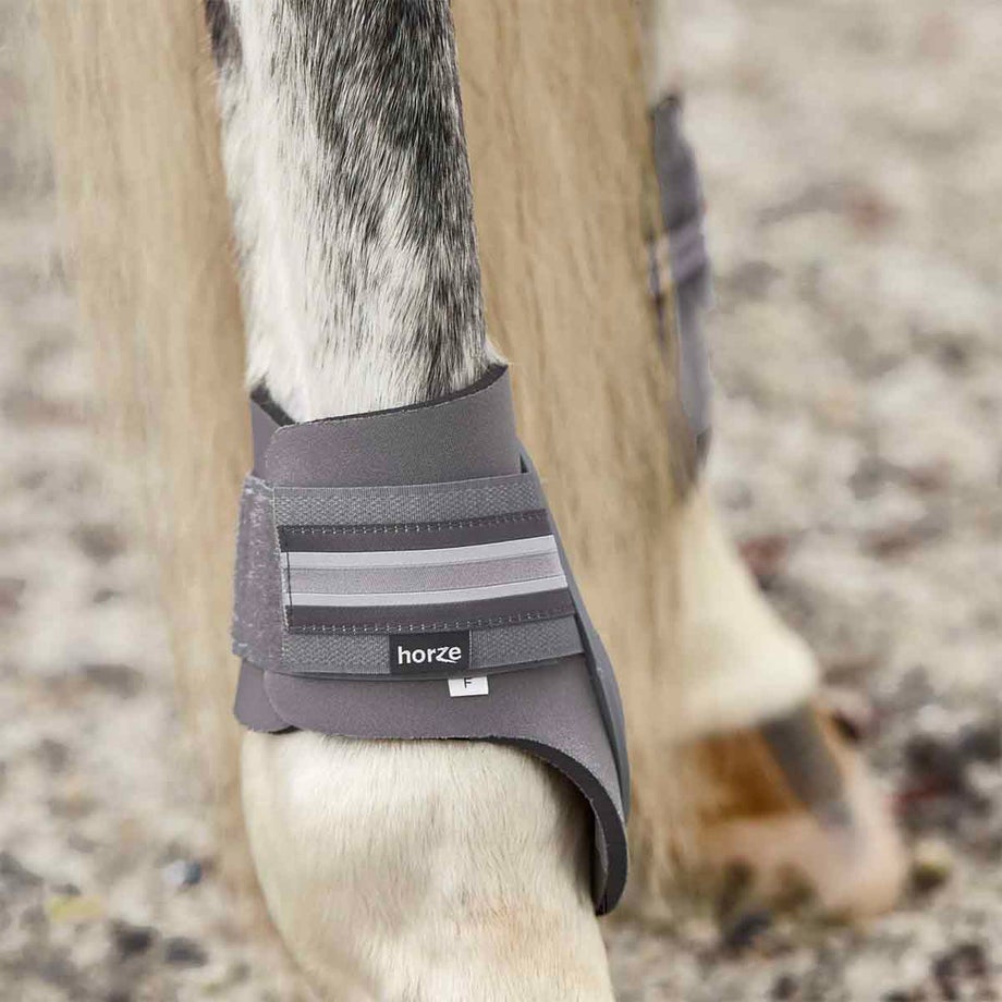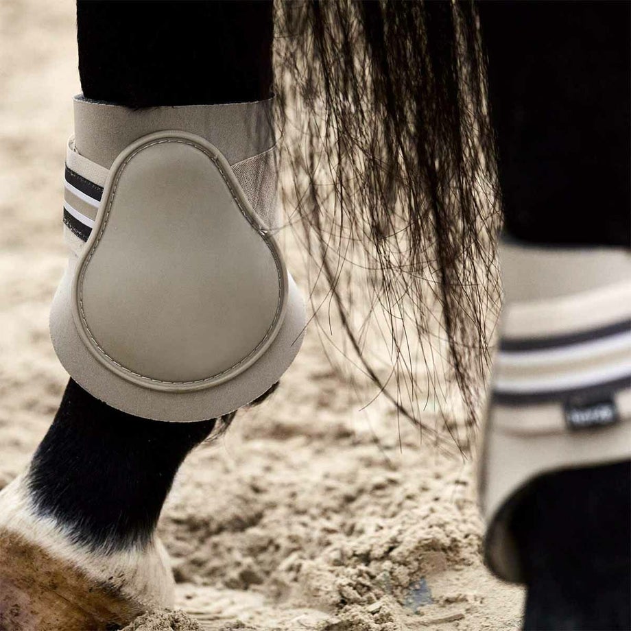 ・馬の脚を保護する乗馬用馬具のプロテクター 後肢(左右1セット)。・耐久性にすぐれたハードシェルと衝撃を吸収するネオプレン素材を合わせました。・スタイリッシュなブロックストライプのベルクロがアクセント。・ダブルベルクロで簡単にしっかりと固定できます。