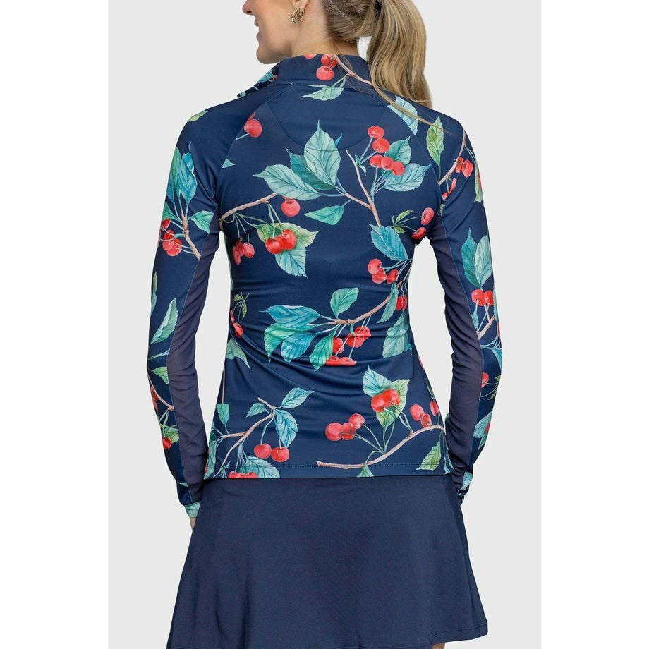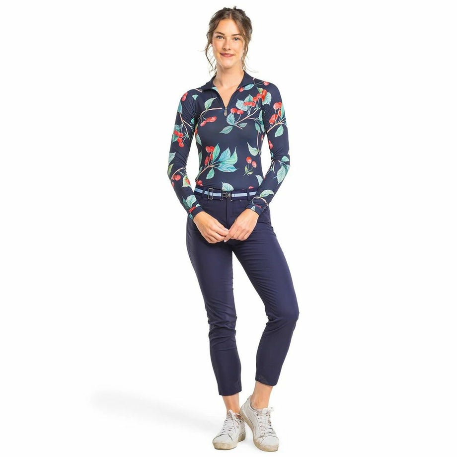 ・深みのあるネイビーと鮮やかなチェリー柄が目を引くデザイン。・柔らかく、あらゆる方向に伸びる4方向ストレッチ生地で動きやすさと快適さを実現。 ・紫外線保護機能が有害な紫外線から肌をしっかり保護。・袖下のパワーメッシュパネルと1/4ジップの襟元で運動中も涼しく快適。・抗菌防臭加工により1日中フレッシュな状態を維持。・乗馬だけでなくゴルフコースやテニスコート、その他あらゆるアクティブなシーンに活躍。