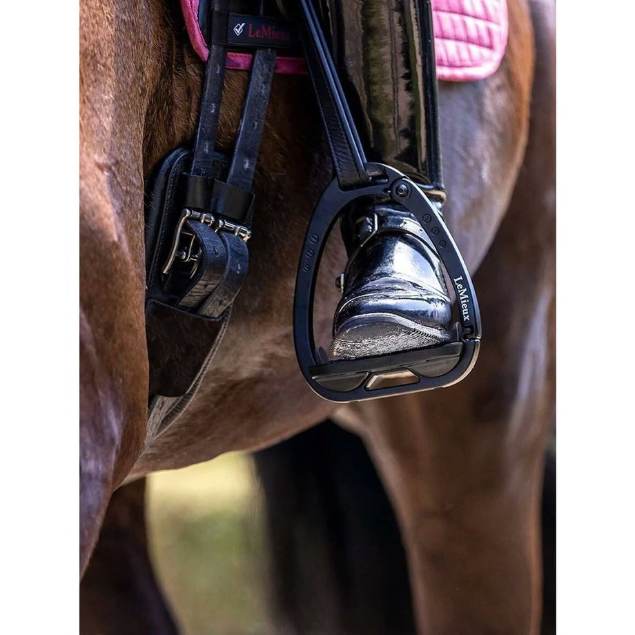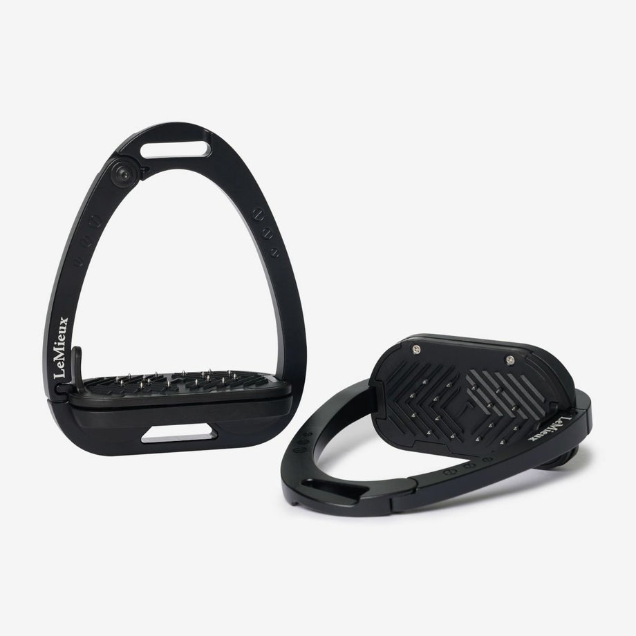 ・革新的なテクノロジーを駆使して開発された乗馬用馬具のセーフティー鐙。・航空産業で使用されるクオリティーのアルミ二ウムで作られた鐙は優れた強度を持っています。・ステップにはピンが埋め込まれ滑りにくい仕様。・鐙革を通す部分は斜めにカットされているため吊り下げたときに正しい方向に向きやすく、足がずれても踏み直しやすくなっています。・落馬などの危険な場面で足を抜けやすくするように設計されています。・プレミアムな輝きがある美しいデザイン。