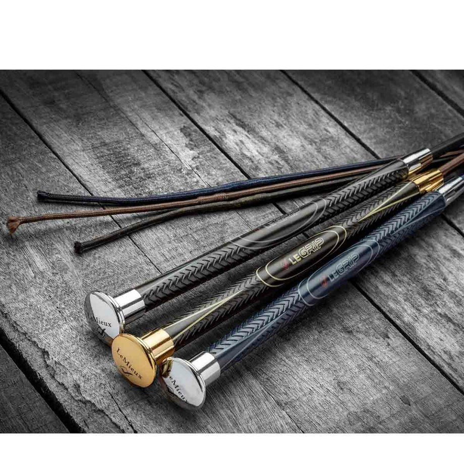 ・洗練された印象の乗馬用長鞭。・美しく仕上げられたメタルのボトムキャップ。・すべりにくい持ち手。・シャフトは超軽量のポリカーボネート製。・すぐれたバランスで扱いやすい設計です。