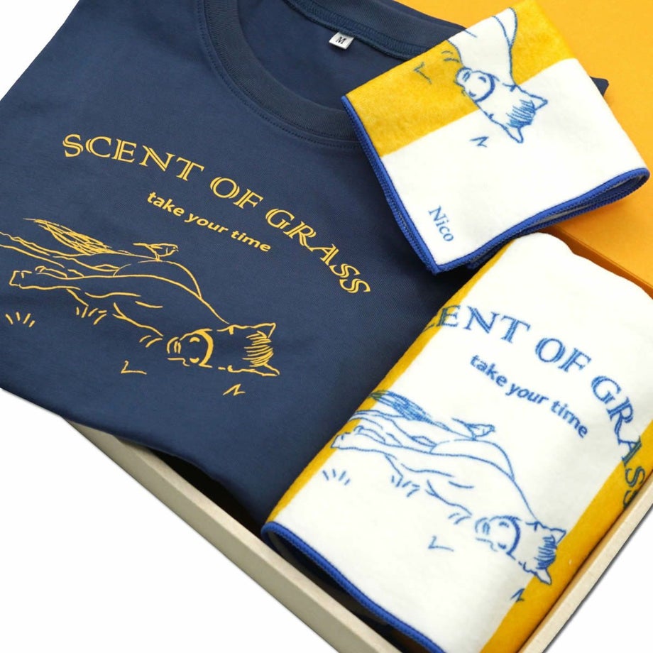 単品での販売はこちら・Nico UVガード Tシャツ「SCENT OF GRASS」レディース・Nico コットン ミニタオル「SCENT OF GRASS」・Nico コットン フェイスタオル「SCENT OF GRASS」
