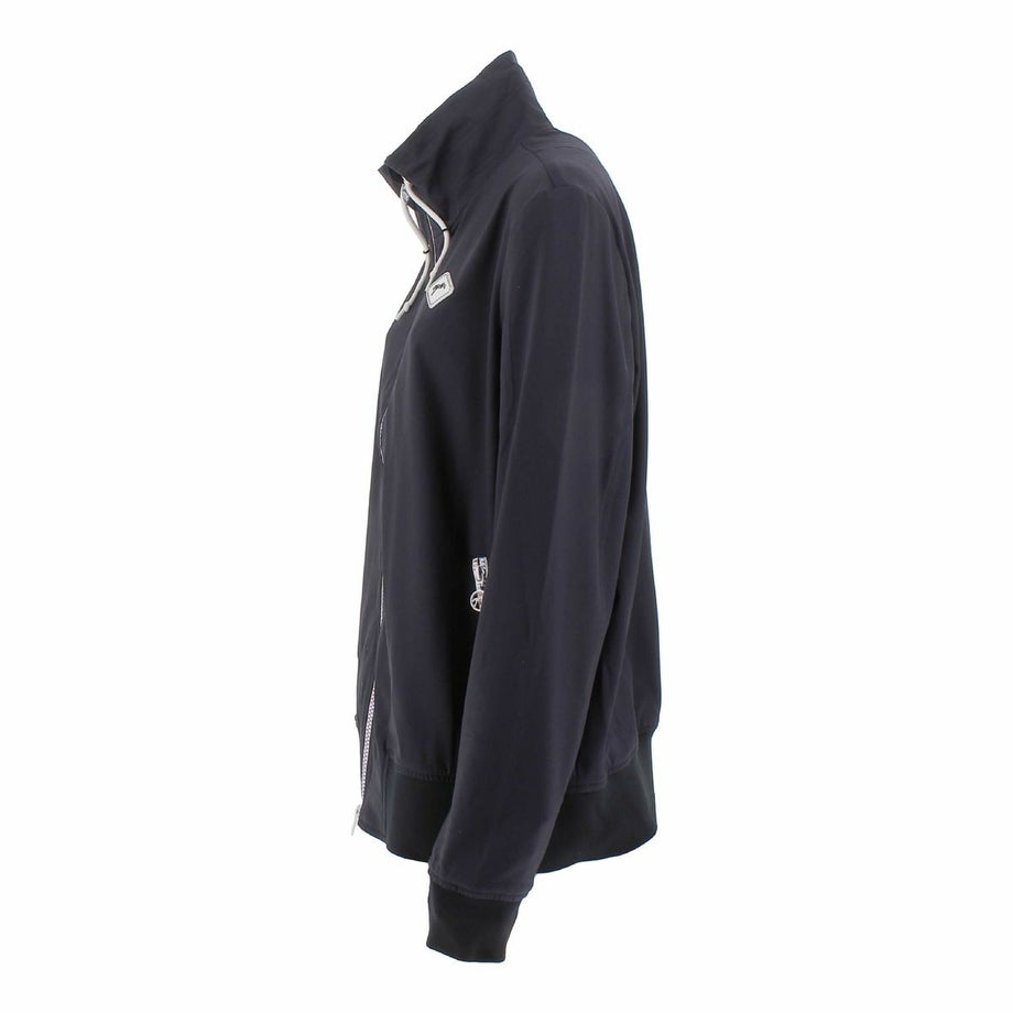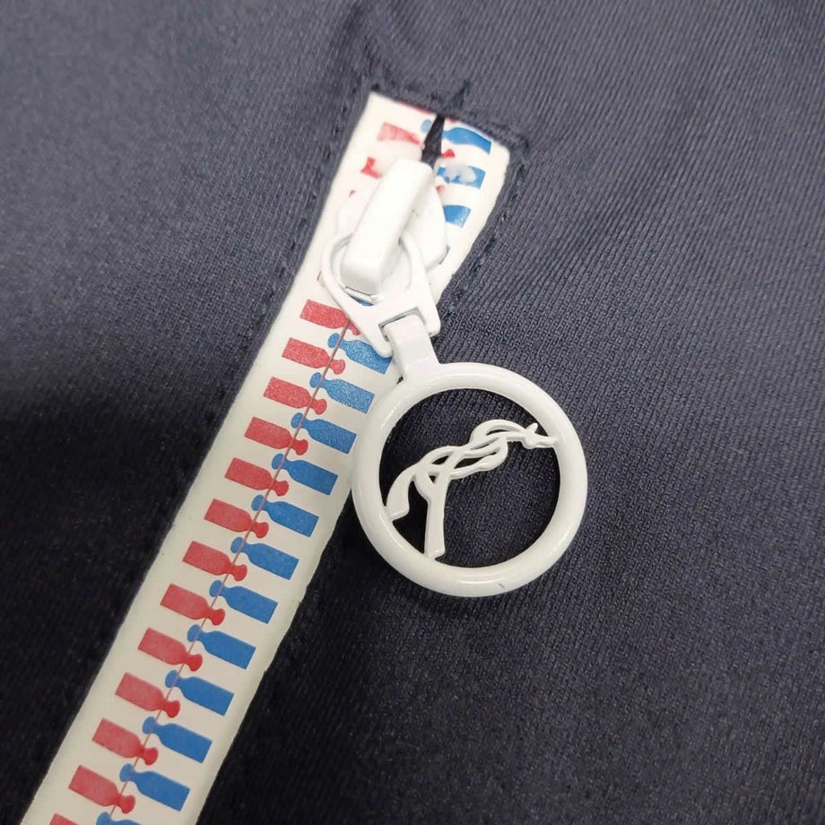 ・軽量で動きやすく裾と袖口はリブ仕様で、体に心地よくフィットします。・襟にはドローストリングが付いており、好みのフィット感に調節できます。・ネイビーを基調としたシンプルでエレガントなデザインです。・胸元のロゴと、トリコロールカラーのジッパーがスポーティーなアクセントになっています。・ジッパーのプルタブにはブランドロゴが刻印され、さりげない高級感を演出しています。・両サイドにはジッパー付きのポケットがあり、大切なものを安全に収納できます。