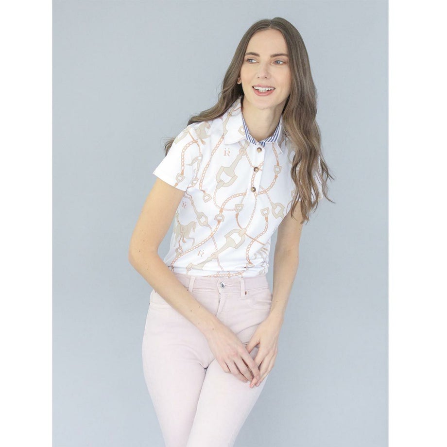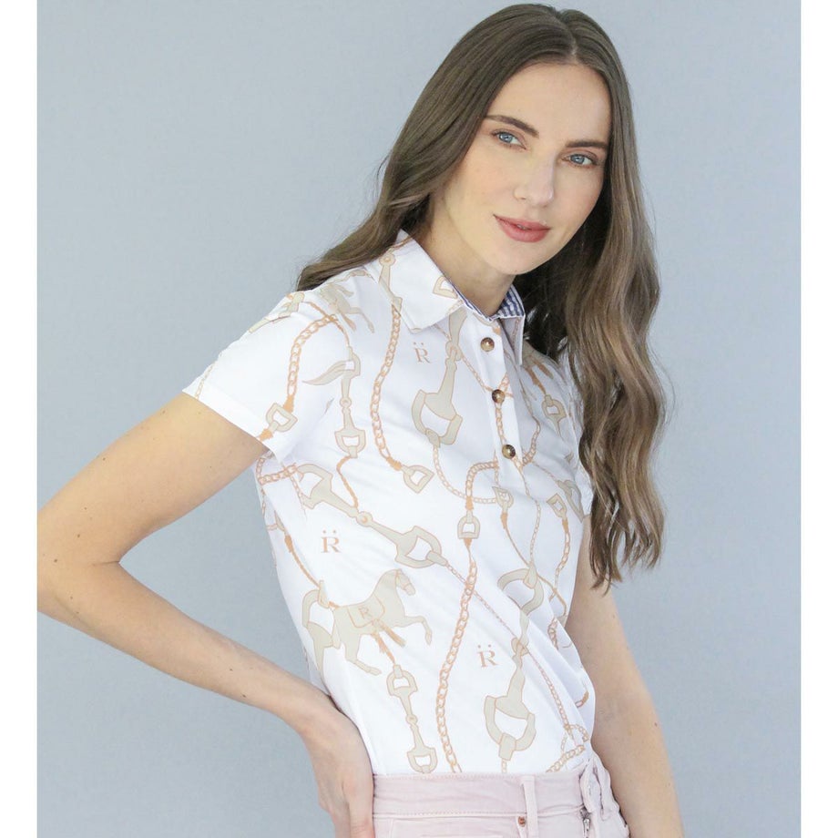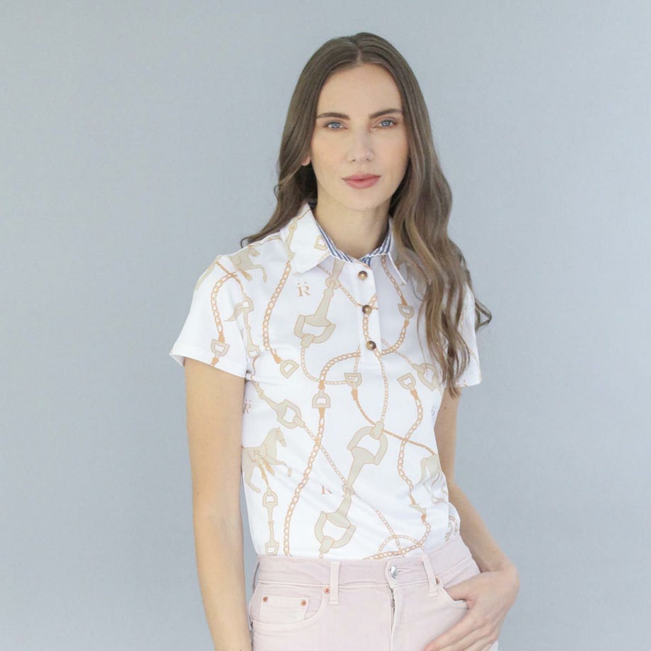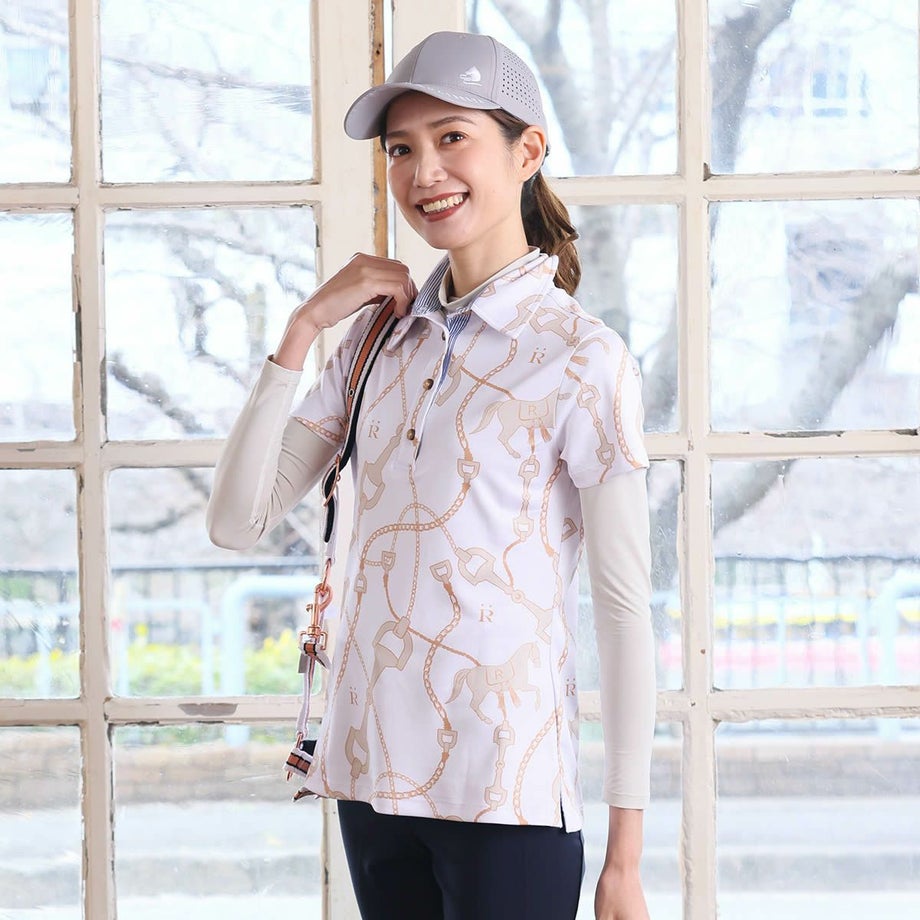 ・クラシックなスタイルですが高機能がうれしい乗馬用のポロシャツ。・とてもエレガントにデザインされた馬具と馬のオリジナルプリント。・吸湿速乾性に優れた快適な素材。・伸縮性がすぐれた生地で、軽くてなめらかな肌ざわりです。・ウエストシェイプでスタイルをキレイに見せてくれます。・オリジナルのファブリックケースに入れてお届けします。