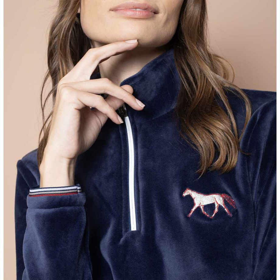 ・ハイスペックなフリース素材を使用した乗馬用のジップフリース。・吸湿発散性やUVカット、防臭や防菌などの機能を備えます。・リッチなベルベットのような質感のフリースはとてもソフトで伸縮性もバツグン。・軽い着用感ながら、肌寒い日もあたたかく体温調節をしてくれます。・さりげなくブランドをアピールする左胸のホースと襟裏のロゴの刺繍ディテール。・ジップ付きの襟元なので着脱がカンタンです。・オリジナルのファブリックケース付き。