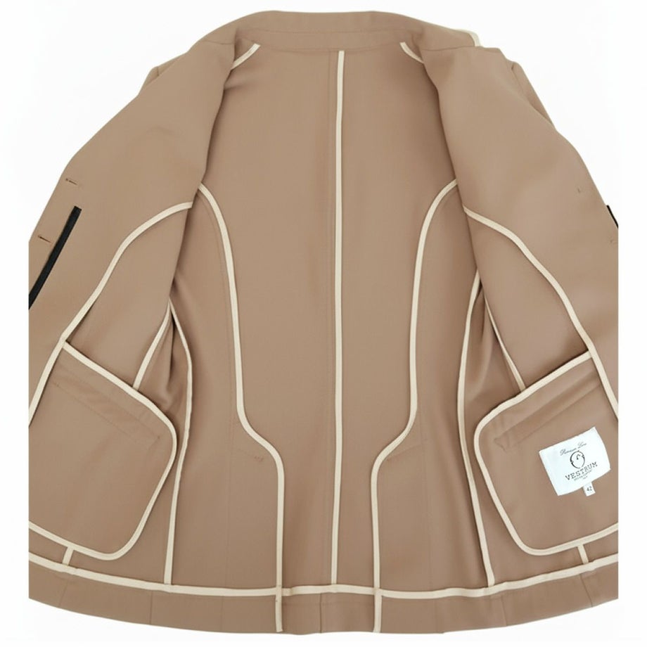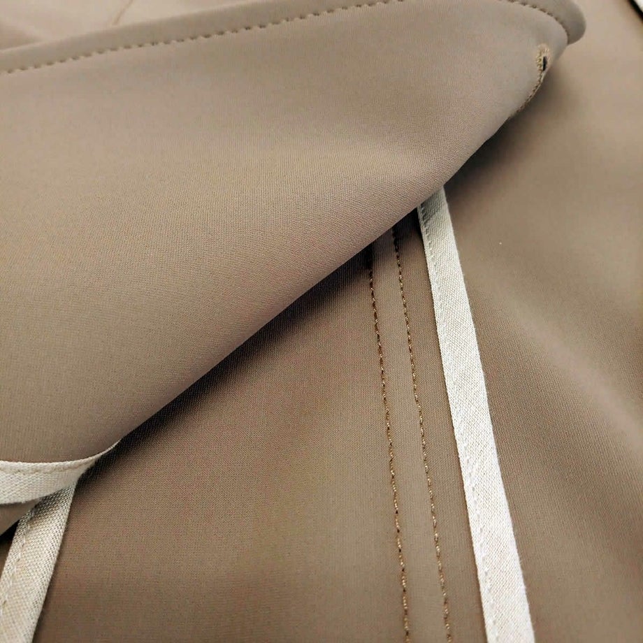・高耐久バイエラスティック素材を使用し、動きやすさと美しいシルエットを両立。・裏地なしの軽量設計で、長時間の着用でも快適。・コントラストの効いた切り替えデザインが洗練された印象を演出。・内側ジップ+ボタンの二重構造で、安定感と品格を兼備。・肩にVestrumロゴパッチをあしらい、さりげないブランドの誇りを表現。・カーヴィーな体型にもフィットする柔らかな着用感。・精緻な縫製と上質な仕上がりが際立つ、品格ある一着。・ポケットはフェイクです。