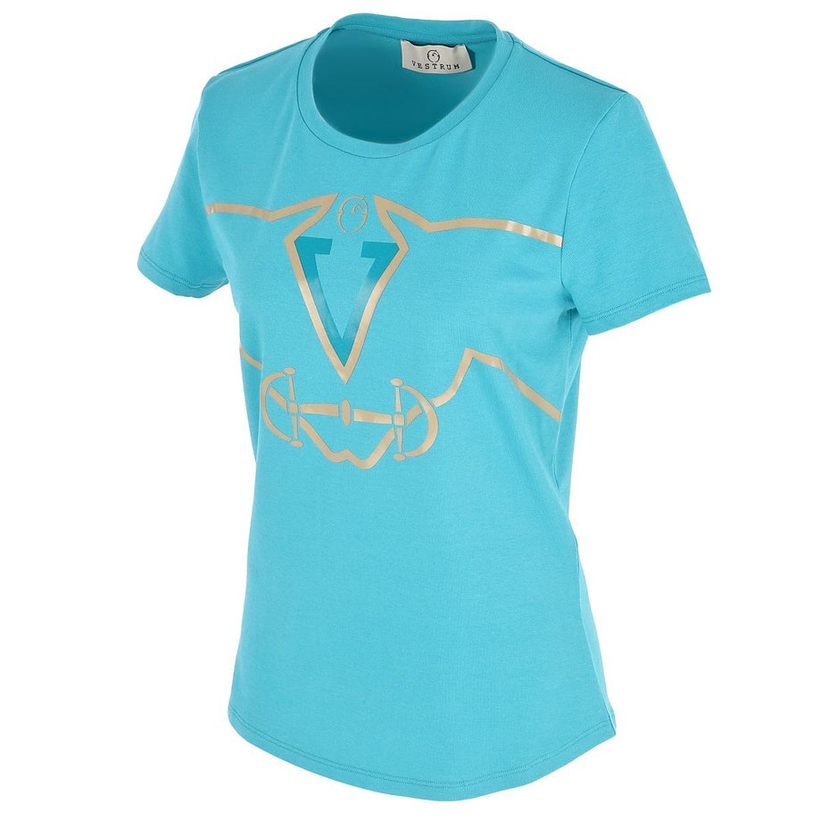 ・上質な二方向ストレッチコットン生地使用。・優れた通気性で、快適な着心地が持続。・普段のトレーニングに最適。・前面に馬術をイメージしたプリントで、Vestrumのロゴと「V」の文字入り。