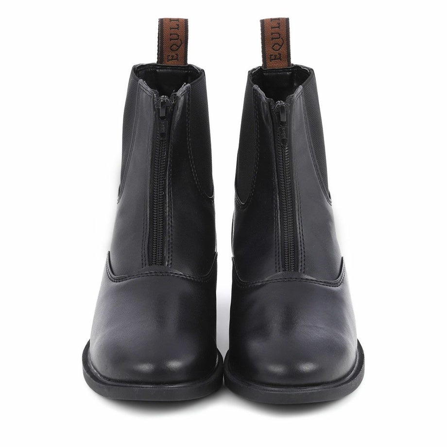 足首の曲げやすいショートブーツ&チャップススタイルは、ビギナーに最適!本革に近い質感の合成皮革を使用。同色のチャップスと合わせればカジュアルすぎない脚元の完成です。脱ぎ履きしやすいフロントファスナー、拍車止め、靴底滑り止め加工など機能性も◎。お手入れしやすいのも嬉しいポイント。・本革に近い高級感のある合成皮革を使用・フロントファスナーで脱ぎ履きカンタン・拍車の位置が安定する、拍車止め付き・あぶみが滑りにくい、靴底すべり止め加工・合皮だから、お手入れもラクラク・工場からの直接仕入れで、品質はそのままにこのお値段を実現しました・乗馬ビギナーや、耐久性にはこだわらずお値段重視の方におすすめです