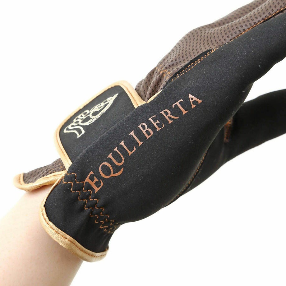 大人気のタイトフィット合皮グローブが改良されて再登場!男性と女性それぞれの手の形に合わせ、徹底的にフィット感にこだわり改良を重ねた日本人のためのグローブです。ユーザーの声を反映し、従来品に比べて手首やマジックテープが長くなりました。また新型マジックテープやスマホタッチを採用。より大きなXLサイズも追加されました。素材や肌触り、機能性にもこだわり抜いた逸品は、一度使うと手放せないアイテムです。・手綱をさばく手元は、上品かつエレガントに。騎乗中の手元は自分が思っているより目立つもの。グローブは、騎乗スタイルを印象付ける重要なアイテムです。高級感漂う光沢素材とEQULIBERTAのロゴマークの洗練されたデザインが、大人っぽく上品に仕上げてくれます。・驚くほどのフィット感日本人の男性と女性それぞれの手の形に合わせ、ミリ単位の調整をおこなって実現した驚きのフィット感。また従来品に比べてマジックテープ長くなり、フィット感の調整がしやすくなりました。・日焼け防止UVカット素材(UPF50+)なので、手を日焼けから守ります。また従来品に比べて手首の生地が長くなり、手首まできっちりと日焼けを防止します。・生地が絡みにくい新型のマジックテープを採用。テープ部分以外には貼り付かないので周りの生地や他の衣類を傷めません。・スマホタッチ対応親指・人差し指がスマホタッチ対応なので、手袋のままでスマートフォンを操作できます。(ホワイトのカラーのみスマホ未対応です)・素材へのこだわり手のひらや手の甲、指の間など、それぞれの役割に応じてこだわった様々な素材を組み合わせています。全ての素材に伸びやすい生地を使用しているので、ぴったりと手に馴染みます。・高級感のあるデザイン手の甲には、光沢があり高級感が漂う素材を使用。機能性だけではなく、見た目の美しさにもこだわりました。・滑りにくく握りやすい設計手のひらには、滑りにくい合皮ヌバックを使用。手綱を通す小指と親指も合皮ヌバックで補強してグリップをUPさせています。またぴったりフィットさせるサイズ感だから、生地がダブつかずしっかりと握れます。・通気性や肌触りの快適さを追求手の甲に、特殊なメッシュ状合皮を採用して通気性を確保。指の間は薄手で肌触りのよいニット生地を使用しているので、蒸れにくく快適です。・丸洗いOKでお手入れ簡単手のひらは汗をかきやすく、内も外も汚れやすいグローブ。丸洗いOKだから常に清潔を保て、お手入れも簡単です。