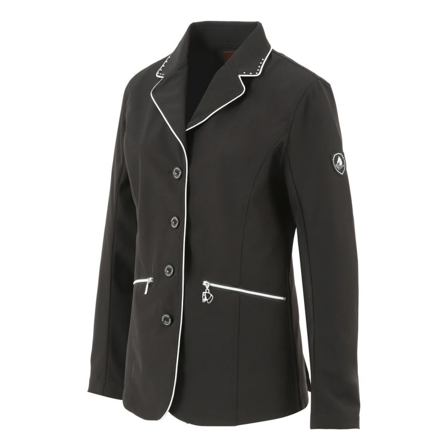・ハイスペックなプライムテックソフトシェル生地を使用した乗馬用のショージャケット。撥水・透湿・防風・防汚、防花粉・2wayストレッチ・UVガードを備えたプライムテックソフトシェル生地を素材にセレクト。日本人の体格に合いやすくデザインされたショージャケットは着る人をより美しい姿へと導きます。動きやすく、騎乗姿勢を綺麗に見せるシルエットにこだわり、オリジナルのボタンやポケットのチャームなど細部にまでこだわったエレガントなデザインです。・動きやすさを追求肩口から袖が前方に流れているデザインを採用し、騎乗時の腕・肩周りの窮屈さを軽減しました。縦にも横にも伸びる2WAYストレッチなのでフィット感もバツグンです。・オールシーズン快適な着心地競技用ジャケットのために開発された独自の高機能生地プライムテックソフトシェルを採用。雨の日には撥水、寒い冬でも防風で体温を保持、暑い夏でも通気性を確保するオールシーズン対応。・撥水機能多少の雨や雪なら気にせず騎乗できます。・透湿湿気を外に逃がす生地なので汗をかいても快適。・防風防風効果のある生地だから、冬場の騎乗でもしっかり保温されます。・防汚、防花粉汚れにくい生地でメンテナンスもらくちん。ご家庭での洗濯もOK。花粉もつきにくいので花粉症の方にもおすすめです。・UVカット紫外線カット機能により、馬場の日差しから肌を守ります。・騎乗に最適化されたシルエット生地の特性を考慮して熟練パタンナーがデザインしたショージャケットは、姿勢の美しさと動きやすさを両立しました。・素材へのこだわり使用する生地はこの商品のためにオリジナルで製造したもので、国内の専門機関での厳しい試験に合格したものです。