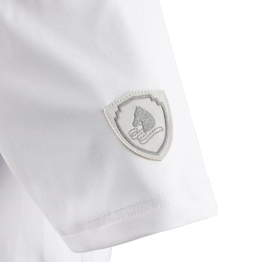 ・競技会でもレッスンでも活躍する快適な半袖のショーシャツ。ハイグレードな機能素材を採用したスポーティなショーシャツ。自在に伸びる2wayストレッチなので動きやすく、なめらかな肌当たりと吸湿速乾性のよさで着心地を向上。競技会だけではなくレッスンにもオススメです。・シルクのようになめらかな肌ざわり。・吸水速乾素材。体から汗を吸い上げ素早く蒸発させ、ドライな状態をキープします。・通気性が高く汗や熱がこもりません。・薄手で軽量ながらもしっかりした生地です。・激しい動作でも動きやすい2WAYストレッチ素材。・日本人の騎乗姿勢に合わせたデザインなので体にフィットしつつも動きやすい。・ゴルフ・テニス・ジョギングなど乗馬以外のスポーツにも最適です。