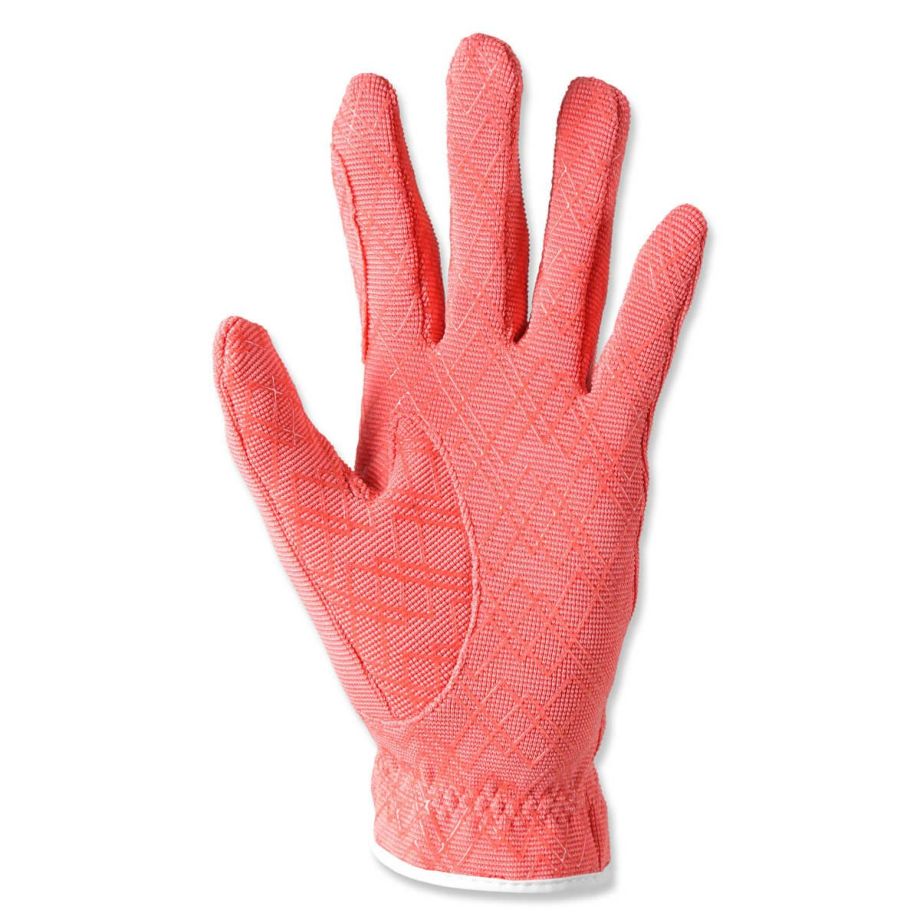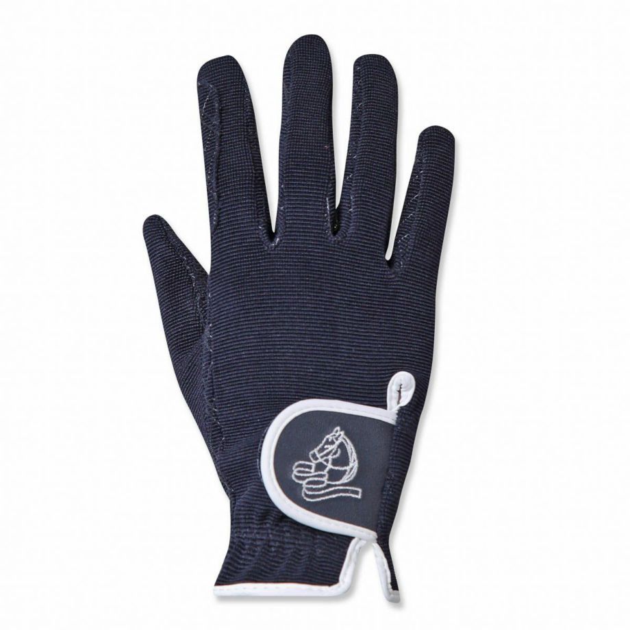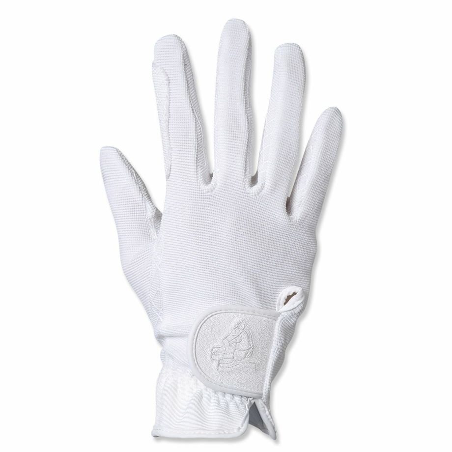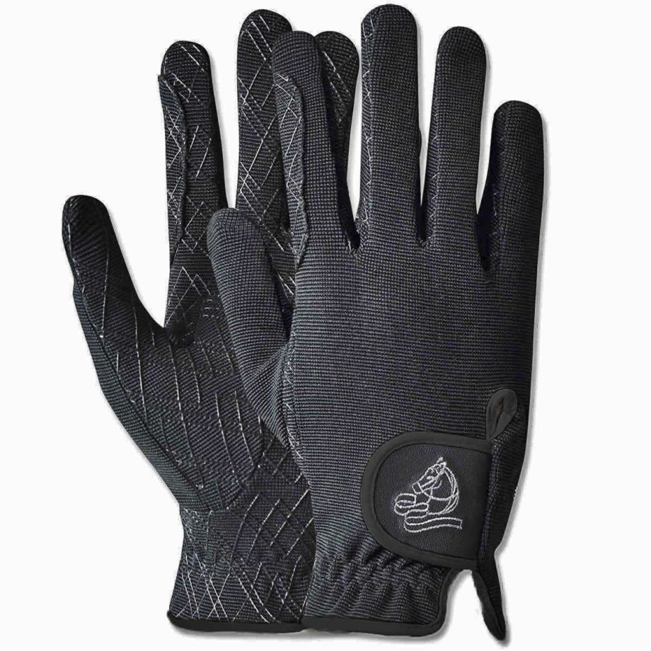 ・伸縮性の高いポリエステル生地のグローブ。さらりとした肌触りで通気性も高く、非常によく伸びるのでとても心地よく使えるグローブです。・手のひら側にはシリコングリップを採用従来の合皮タイプに比べ、グリップ力が高く、ごわつきがなく、伸びやすい素材です。・生地が絡みにくい新型のマジックテープを採用。テープ部分以外には貼り付かないので周りの生地や他の衣類を傷めません。・手綱を握る人差し指や小指廻りは当て布で補強されています。・お手頃価格で使いやすくオシャレなグローブ。普段の練習用に使っているコットングローブの代わりにいかが?