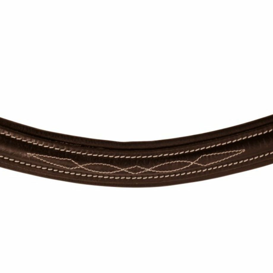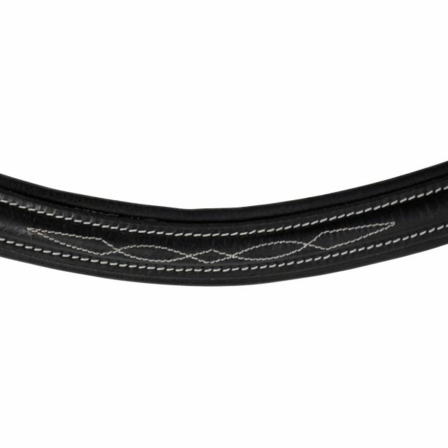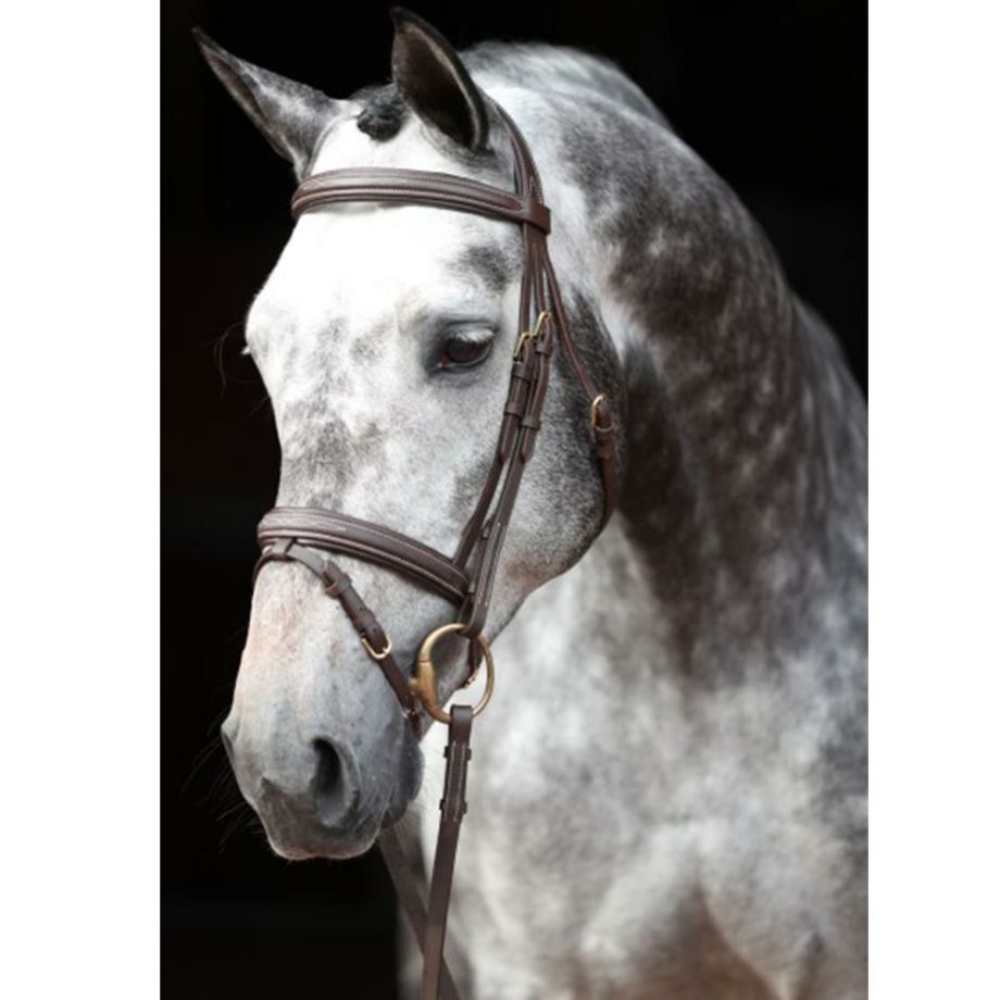 ・しなやかな本革を使った乗馬用馬具のスナッフルブライドル。・クラシックなスタイルで高級感があります。・装飾的なホワイトのステッチがエレガントさを添えるデザイン。・パッドをあしらうことで馬へのあたりをソフトに設計しています。・扱いやすいウェブ手綱付き。