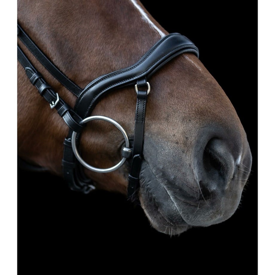 ・ドイツの老舗が手掛ける機能性と美しさを備えた乗馬用馬具の頭絡。・質にこだわるライダーのための「X-LINE」シリーズの新作。・ラインストーンを施したエレガントなデザイン。・ノーズバンドとヘッドピースはソフトなパッド付き。・鼻骨への圧力を軽減する設計。・フィットするフォルムと馬の耳や鼻孔の自由度を向上することにもこだわりました。・タフなステンレス金具を使用しています。・布製の手綱が付いています。