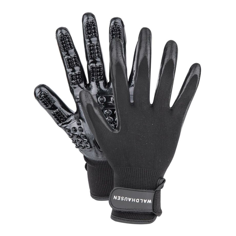 ・手にはめて使える、実用的な馬のお手入れ用グルーミング&クリーニンググローブ。・手の平の部分には効率のよい馬のお手入れに最適な大小の突起を備えます。・馬の血行をよくするマッサージや抜け毛落とし、汚れ落としの作業が簡単にできます。・手首にはベルクロをあしらっているので、着脱やサイズの微調整がスムーズです。
