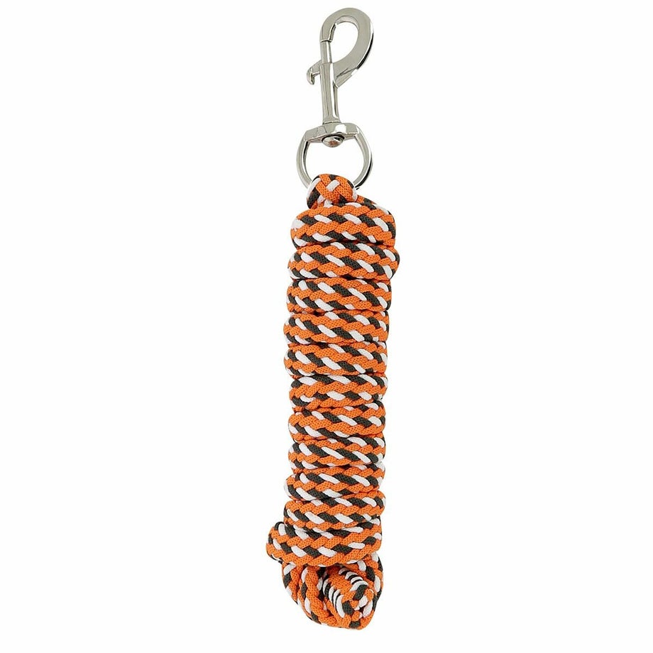 ・柔らかく丈夫な編み込みのポリエステル製で、馬にもやさしい肌触り。・亜鉛製の回転式ナスカン付きで、ねじれにくくスムーズに使用可能。・約2.5mの使いやすい長さで、日常の係留に最適。・カラフルなトリコロールデザインで、見た目も楽しく個性を演出。