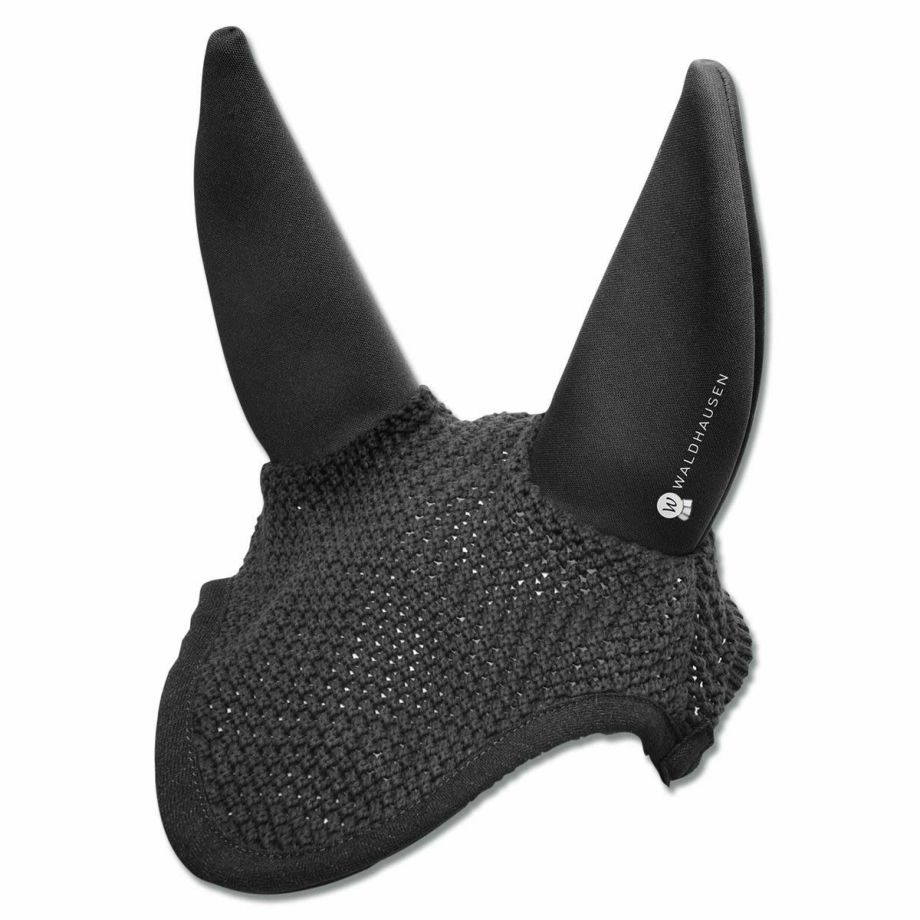 ・防音仕様のイヤーネット。・耳の部分に吸音材を使用した、騒音に敏感な馬のためのデザイン。・左耳にブランドロゴあり。・清楚な編み目とラメ入り縁取りにさりげないオシャレ感。・着けることによって人も安心して騎乗できます。