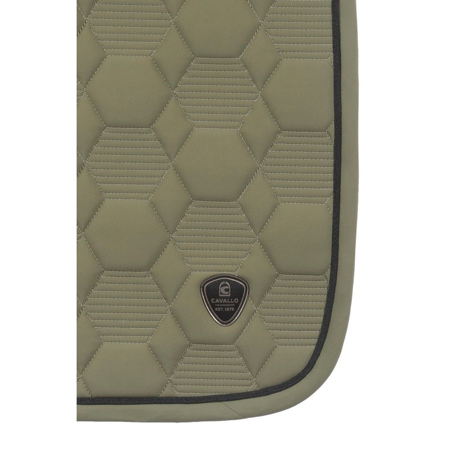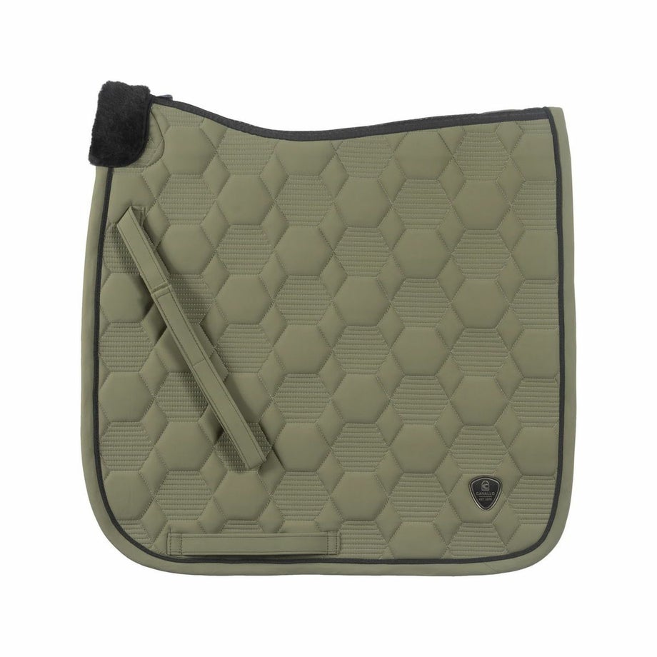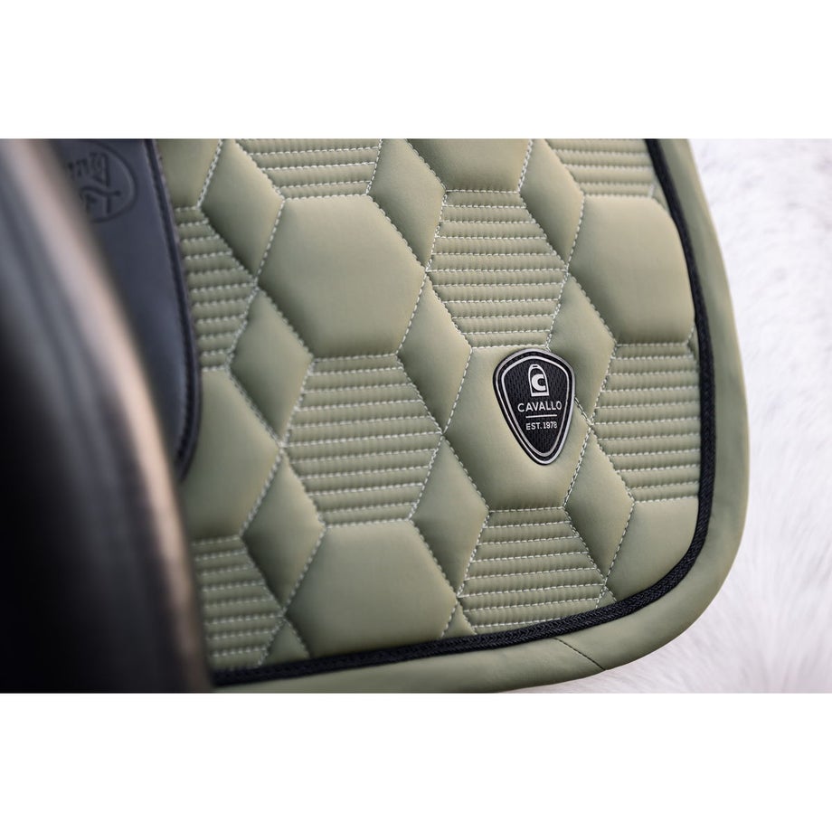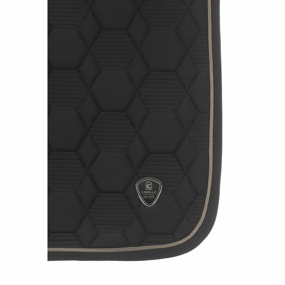 ・においを抑える防臭加工の表地を採用。・通気性と速乾性に優れたメッシュ裏地でムレなく快適な使い心地。・立体キルティングと形状保持パッドで背中にしっかりフィット。・上下のベルトはベルクロ付きで着脱が簡単。・下部の3点ループで鞍下のズレを防止し、安定した装着感を実現。・背中と両サイドにCavalloのロゴパッチ入りで高級感のある仕上がり。・コントラストの効いた縁取りテープがスタイリッシュなアクセントに。