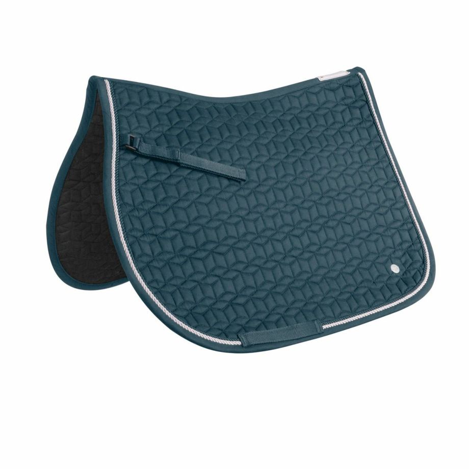 ・馬の背中にやさしい、衝撃吸収性のある厚手フォーム入り。・通気性と吸汗性に優れ、ムレにくく快適な使い心地。・光沢感のある素材とコード装飾で、洗練された印象に。・表地はポリエステル製で、耐久性も抜群。・障害鞍、総合鞍に対応したユニバーサルな設計。・オールシーズン対応で、季節を問わず活躍。・取り外し可能なベルクロループ付き。