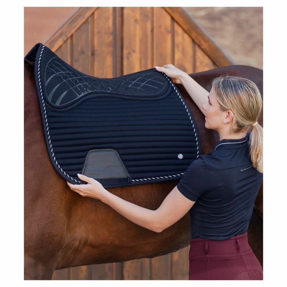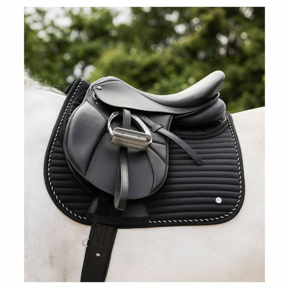 ・快適さとスポーティな美しさを両立。・サドル部分に衝撃吸収性に優れた高品質フォームを内蔵。・シリコン滑り止めでサドルのずれを防止。・腹帯部分は丈夫な補強付き。・おしゃれなパイピングやシルバーのメタルプレートがアクセント。