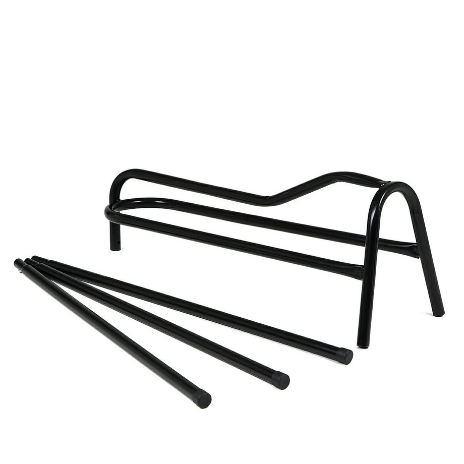 組立式のサドルスタンド。鞍の保管、お手入れ時にとても便利です。・置き場所に困る鞍の必需品。おうち、クラブ、試合会場で大活躍。・鞍の型崩れ防止に。・スタンドに乗せればお手入れ作業も楽々。・軽量だから持ち運びにも最適。・分解できるので使わないときはコンパクトに収納できます。・脚部分に保護キャップが付いているので床を傷つけません。