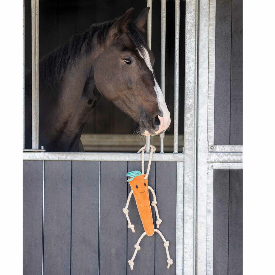 ・馬が大好きなニンジンのカタチのホーストイ。・ココナッツ繊維で作られた中綿、丈夫なスエード、綿やジュートなどを使用。・耐久性があり、馬に安全で環境にもやさしい素材です・ロープがあるので厩舎の柵などにも取り付けて使えます。・天然由来の素材で作った、馬に優しいおもちゃです。