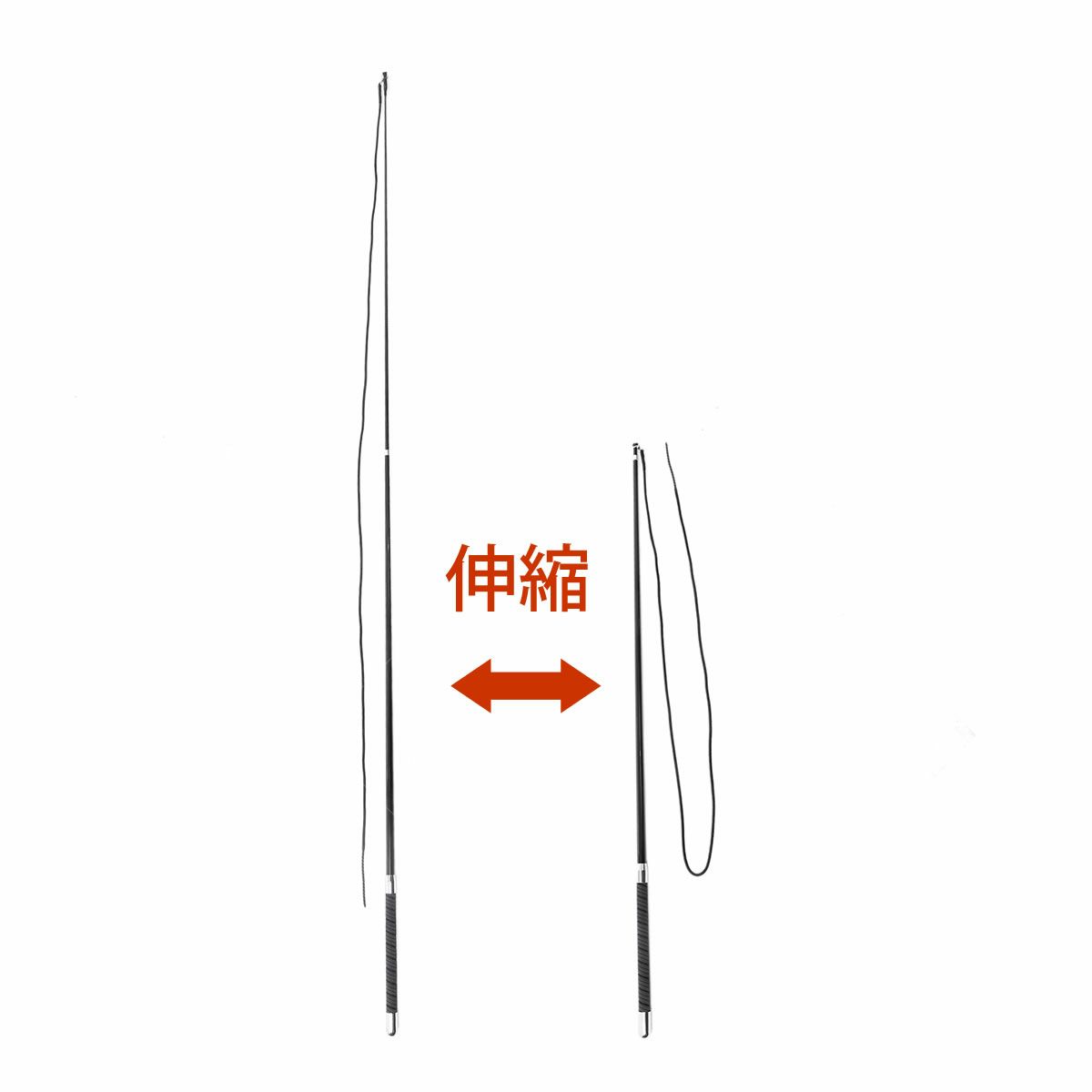 ・調馬索運動の時などに使用する調教用の追い鞭です。・釣竿のように伸縮して約103cmまで縮むので持ち運びが非常に便利。・クラブへの行き帰りや大会への遠征など、追い鞭を持って移動する時に重宝します。・ラバーを編みこんだ滑りにくいグリップ。・光沢のあるシャフトやメタルキャップが高級感を漂わせます。