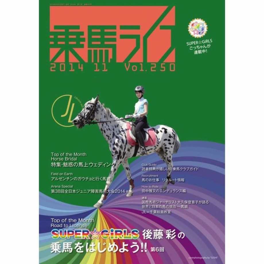 馬に係わるすべての人に贈る総合情報誌。馬が好き!乗馬を始める、楽しむ情報マガジンです。・サイズ A4判・出版社 メトロポリタンプレス【内容】■Top of the Month■ Road to License● SUPER☆GiRLS 後藤彩の乗馬を始めよう!! ♯6 今回の「SUPER☆GiRLS 後藤 彩 の乗馬をはじめよう!!」では、彩ちゃんの競技会デビューに向けたレッスンの模様をお届けするとともに馬場馬術の課目について紹介する。■Top of the Month■ Horse Bridal ●魅惑の馬上ウェディング 絶対オススメの馬上ウェディング特集。馬たちといっしょに幸せを!■ Field on earth●アルゼンチンのガウチョと行く馬旅―外乗、牛追い、馬の国「アルゼンチン」で体験する馬たちとの生活 世界のトップポロプレーヤーの多くがアルゼンチン出身。この国はポロを中心に馬文化の盛んな国だ。エンデュランスなどの競技はもちろん、日常生活と馬との関わりも深い。今回は馬の国「アルゼンチン」で体験できる外乗や牛追い、そして馬祭りについて紹介しよう。■Score Board & Arena Special●全国各地の競技会結果発表 競技会にチャレンジする全国のライダーのためにお送りする“Score Board”。いよいよ秋も本番!過ごしやすい季節だからこそ、万全の態勢で競技に臨みたい今日この頃。納得できる結果を残すために、もうひと頑張りしてくださいね!!● Overseas Riders―海外で活躍する日本人ライダー情報 海外で競技会に出場する日本人馬術家たちの競技会情報をお届けするこのコーナー。現在、多くの選手たちが海外で活動している。今回は2014年7月下旬~8月末日分の競技結果を掲載する。なお8月から9月にかけて行なわれた世界選手権に出場した日本人選手については全データを掲載する。(選手名敬称略)● Arena Special 38回全日本ジュニア障害馬術大会2014 2014年の障害飛越競技ジュニア3世代の全日本チャンピオンを決める大会が7月31日~8月3日にかけて御殿場市馬術・スポーツセンターにて開催された。ヤングライダー、ジュニアライダー、チルドレンライダーの3カテゴリーの各選手権競技を取材した。(文中選手名敬称略) ■Family●CHIBA ART KIDS GALLERY#5 「馬を立体的に学ぶ」 JL×千葉絵画教室の「馬を立体的に学ぶ」をテーマとした第3弾。今回も馬のフォルムやポーズを多角的にとらえた子どもたちの作品を紹介します。■Cartoon●マチコーほのぼの常足ライフ■Column●不羈の手綱ー馬術・乗馬と競馬●乙女たちのグランギャロー「思い出のノルマンディーで」●あの馬を訪ねてーアローハマキヨ●馬鏡 Tokiko’s opera glasses■How to Ride●田中雅文 エンデュランス編ー事故で中止になった釧路大会を考えるほか