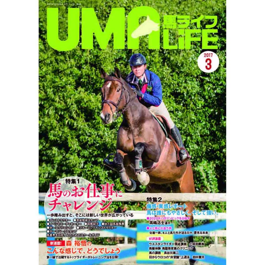 乗馬を始める、楽しむ情報マガジン「UMA LIFE」動物が好き?それなら馬と遊びましょう!乗馬というと何だかチャレンジしづらいイメージがあるかもしれませんが、じつは国内にはおよそ700の乗馬クラブがあるんです。大別すると【1】馬場内でのレッスンがメインのもの【2】海や山、草原を馬でお散歩する《外乗》をメインにしたものの2タイプです。もちろん初めての人向けのプランも充実しています。たとえば4回のレッスンがセットになった体験乗馬教室(15,000円前後)や簡単なレクチャーつきの外乗(1時間10,000円程度)などなど。そうして馬と仲良くなったら、馬と遊ぶ楽しみが膨らみます!どんな風にして遊びましょう?「UMA LIFE」には、馬と過ごす時間が楽しくなるような国内外の情報が満載です。さらにあなたの地域の乗馬クラブがすぐにわかる【乗馬クラブガイド】もついていて、あなたの乗馬ライフをサポートします!・サイズ A4判・出版社 メトロポリタンプレス【内容】●特集1馬のお仕事にチャレンジ・インストラクター 未体験の世界だけど、今は充実の日々を過ごす・育成牧場スタッフ 世界で活躍できる強い馬作りを目指して精進・イベントコーディネーター 日本では珍しいパフォーマンス集団・調教助手 こんなにやりがいのある仕事は他にない・地方競馬厩務員 サラリーマンから転進して、本当によかった!・ホースクリニシャン 馬という動物を知り、その心理を深く理解する・グルーミングインストラクター 心をこめて手入れすることを心がける・テーマパークスタッフ お客様の喜ぶ姿を見ることが仕事のやりがい☆馬業界を目指す人のためのスクールガイド●特集2 痛感 実感レポート 馬は誰にもやさしく、そして強い。・元騎手・現 パラ馬場馬術 高嶋活士選手 2020年パラリンピックを目指して・太田宏昭の人と馬に出会う旅 佐藤一家、4人と馬たちが送る日々、夢みる未来●新連載スタート! 第一線で活躍するトップライダーがトレーニングを公開! 森 裕悟(クレイン東京)のこんな感じで、どうでしょう 第1回 バランスの確立●JL Urashima's Box 耳を澄ませば、いろいろなニュースが見えてくる 横浜の赤レンガ倉庫で馬の祭典が開催・第1回ホースメッセよこはま2017・横浜 根岸・馬の博物館 おがわじゅり原画&複製原画展・ピアッフェ通信 「馬術」と「乗馬」で、もっと世界へ!・最新、馬運車事情 快適な馬の輸送を目指して! ・毎日が乗馬日和! 案ずるより“ウマ”が易し! 南方あずみ●好評連載・Horse Culture 太田宏昭 雪のばんえい競馬 ・UL FACE 六会ホースショー 2017・馬整体師 馬屋原孝惠のクリニック 喉と舌のマッサージ ・ウエスタンライダー養成講座 サークルスローダウン(土岐田騰馬)・馬の調教 騎座、脚で押したら前に進む《推進》その1 (長谷川雄二)・馬鏡 2017年 世界のトップが変わった!(大久保登喜子)・目からウロコの“非常識”上達法 実はやさしい駈歩 その2(田中雅文)●Column 馬探訪 あの馬を訪ねて リキアイサイレンス●Club Guide 乗馬クラブガイド●Recruitment 馬のお仕事・リクルート●付録 とじ込みカレンダー付