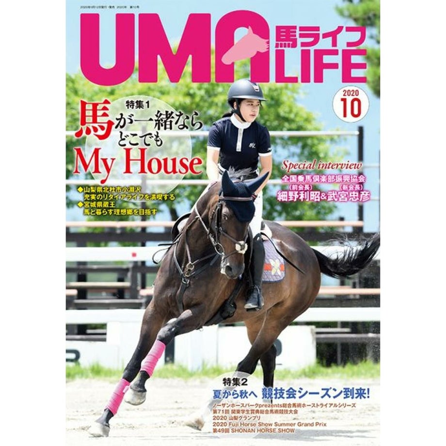 乗馬を始める、楽しむ情報マガジン「UMA LIFE」動物が好き?それなら馬と遊びましょう!乗馬というと何だかチャレンジしづらいイメージがあるかもしれませんが、じつは国内にはおよそ700の乗馬クラブがあるんです。大別すると【1】馬場内でのレッスンがメインのもの【2】海や山、草原を馬でお散歩する《外乗》をメインにしたものの2タイプです。もちろん初めての人向けのプランも充実しています。たとえば4回のレッスンがセットになった体験乗馬教室(15,000円前後)や簡単なレクチャーつきの外乗(1時間10,000円程度)などなど。そうして馬と仲良くなったら、馬と遊ぶ楽しみが膨らみます!どんな風にして遊びましょう?「UMA LIFE」には、馬と過ごす時間が楽しくなるような国内外の情報が満載です。さらにあなたの地域の乗馬クラブがすぐにわかる【乗馬クラブガイド】もついていて、あなたの乗馬ライフをサポートします!・サイズ A4判・出版社 メトロポリタンプレス【内容】特集1 馬が一緒ならどこでも My House・東京から移り住んだ小淵沢 馬を相棒に悠々自適な毎日を過ごす・宮城県蔵王を拠点に20年 馬好きが集う憩いの牧場を目指す・お馬さん、ご飯ですよ! 馬事学院の飼料をチェック・愛馬のためのヘルスケアフード(シナプス、日本農産工業)特集2 逆風満帆 夏から秋へ 競技会シーズン到来!・ノーザンホースパークpresents総合馬術ホーストライアルシリーズ・第71回 関東学生賞典総合馬術競技大会・2020 山梨グランプリ・2020 Fuji Horse Show Summer Grand Prix・ 第49回 SHONAN HORSE SHOWSpecial interview・全国乗馬倶楽部振興協会 前会長 細野利昭&新会長 武宮忠彦乗馬普及のバトンはこれまでも、これからも継がれていく・特別寄稿 全国乗馬倶楽部振興協会 前理事 前田 昭・佐島牧場―火災事故からの再起・ご長寿馬から生きる意味を学ぶ 母なる木曽馬 寿号感度は360° 人&馬ナビゲーション・元競走馬が「引退馬・休養馬の森」でリトレーニング中・パラ馬術 稲葉 将さんは東京パラリンピックを目指す・ピアッフェ通信 広げよう、“馬友”の輪! 松本美紀さん・雪印こどもの国牧場は馬と子どもの別天地・自分だけの1足! 坂本乗馬靴の個性と魅力好評連載・馬がいる場所 金色の煌めき in 岩手県・遠野・森 裕悟のこんな感じで、どうでしょう 馬とのコンタクト(後編)・千本木倫子のイギリスからNeigh Neigh聞いて 馬術は国境を越える・迷馬のトリセツ スゴイデー(レイニングホース編) 菊澤大助・馬乗りのためのピラティス入門 インナーマッスルを使う・Horse Talk 馬にささやく調教 ホース・ウィスパラー・馬探訪NEO アドマイヤジャパンお役立ち情報コーナー・クラブガイド/馬のお仕事・リクルート・うまうまVOICE/馬ちがい探し7・UMA LIFE Collection /Information/読者プレゼント特別付録 ニシガキヒロミ おえかきコラボアート