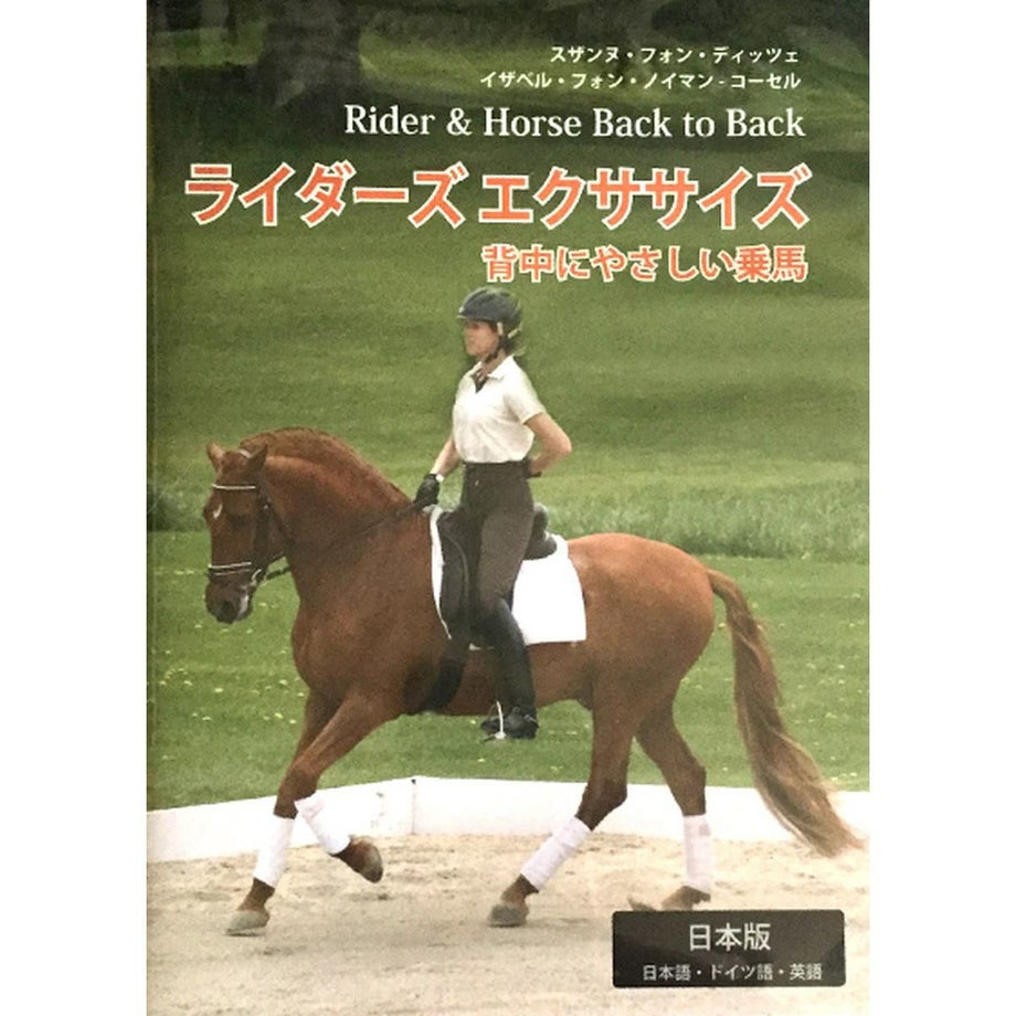 バランスインムーブメントのセンセーションから15年。満を時して発表された「Rider and Horse Back to Back」のエッセンスを映像化したDVD。人馬一体のための様々なヒントとエクササイズが凝縮されています。ライダーの背中を保護し、強化しながら正しいシートに導くエクササイズが50例以上掲載馬上において、腰はライダーのあらゆる動きにおける中心といえます。しかし、そうであるにもかかわらず、私たちはほとんどの時間を座った姿勢で費やしているため、多くの場合、腰に弱さを抱えています。健康な腰を保つ秘訣は、馬に乗るか乗らないか、という選択ではなく、どのように馬に乗るか、ということです。扶助を過度に強く使えば、腰がその負担を受けることになります。乗馬は腰を強化させることができると同時に、腰に負担を与えることもできます。唯一、背骨や腰の安定があって初めて、ライダーは快適に乗馬を行うことができます。そして、それは体の各部が調和のとれた動きをしていることを意味します。このDVDでは、馬とライダー双方の背中や腰の相互的な関係をお見せしていきます。腰や背中のためになる騎乗時や調馬索における50種類以上もの実用的なエクササイズを紹介します。その他にも「感覚」を発達させ、腰をより上手に動かすための実用的なヒントや、自分の体の弱点への取り組み、また腰に負担を掛けないためのトレーニングなどを紹介していきます。また、あらゆるレベルのライダーに対してのアドバイスもしています。1. 背中のはたらき2. 安定を高めるエクササイズ3. 乗馬で求められる背中の動き4. 調和を高めるエクササイズ5. 個々の動きの特長6. 腰にやさしいトレーニング7. 動きを高めるエクササイズ日本語版DVDです。