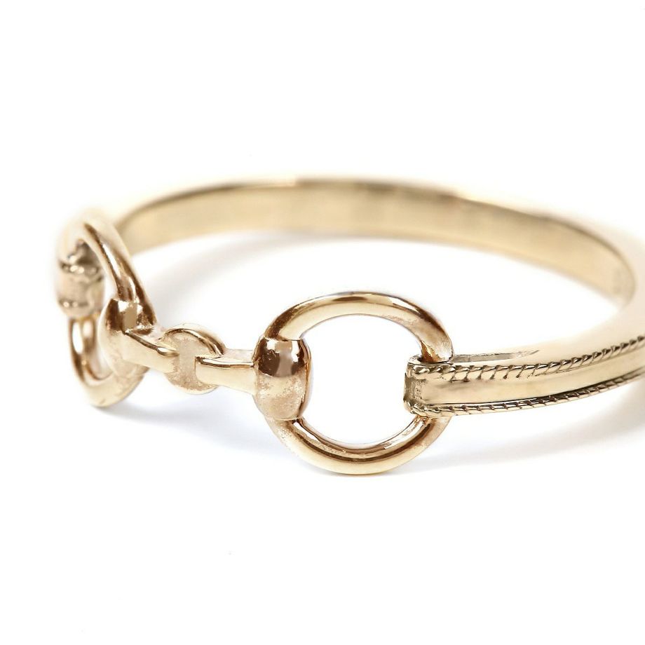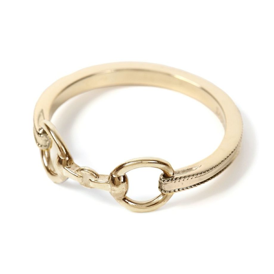 ハミのデザインをあしらった繊細で美しいリング。日本人女性に合わせたボリューム感で目立ちすぎず、身に付けた人を引き立てるジュエリーです。馬具モチーフアクセサリーは、馬と乗馬を愛する「自分らしさ」をさりげなく主張できるアイテム。高級感のあるEQULIBERTAロゴ入りジュエリーBOXに入れた状態でお届けしますので、プレゼントにもおすすめです。・繊細で高級感のあるデザインハミと繋がるパーツは手綱をイメージし、よく見ると手縫い風のステッチ模様が入っています。小さなハミモチーフはまるで本物のハミのよう。細部までこだわったつくりなので近くで見れば見るほど美しい仕上がりです。ゴールドは爽やかで柔らかい金色に調整された10Kゴールドです。・有名ジュエリーアトリエが手掛けた作品有名ブランドや著名人向けのジュエリーを手掛けるアトリエが、何度も細かい修正を重ね時間をかけて仕上げたこだわりの逸品。もちろんMade in Japanです。アトリエのデザイナーが有名ブランドにも引けを取らない出来栄えと自信をもっておすすめする完成度です。・4号サイズは小指にはめるピンキーリングにどうぞ!