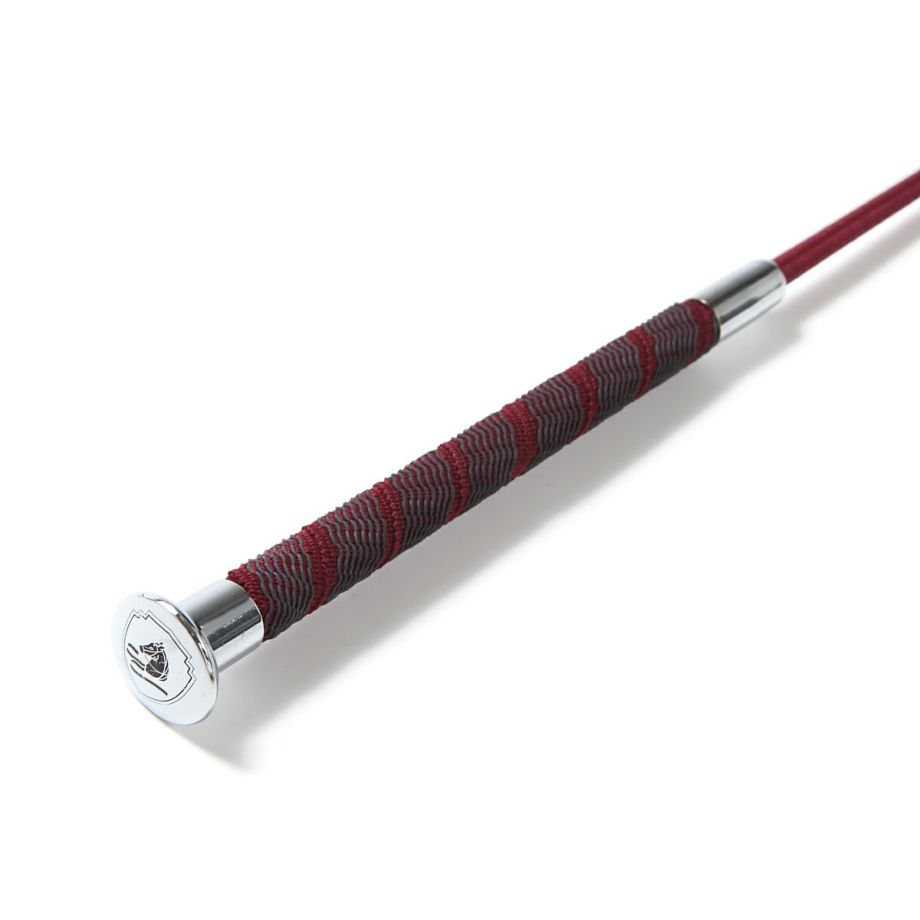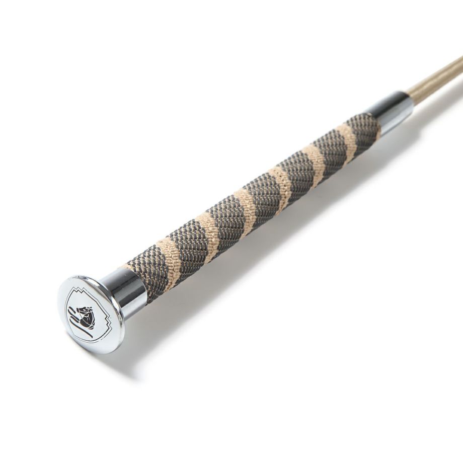 グリップにラバーを編みこんだ滑りにくい短鞭。しなり具合はやや硬めとなります。グリップのメタルキャップが高級感を漂わせます。カラーが豊富で買いやすい価格だから、コーデに合わせて色んなカラーを楽しんで。グリップにストラップホールがあるのでチャームやキーホルダーでオシャレできます。目印になって、よくあるムチの取り間違え防止にも。JODHPURS ムチ用リストバンドも取り付けしやすいです。