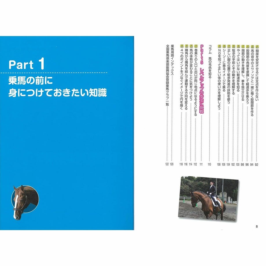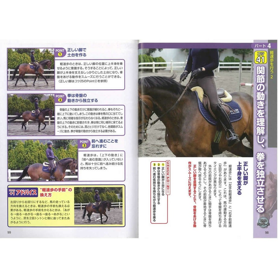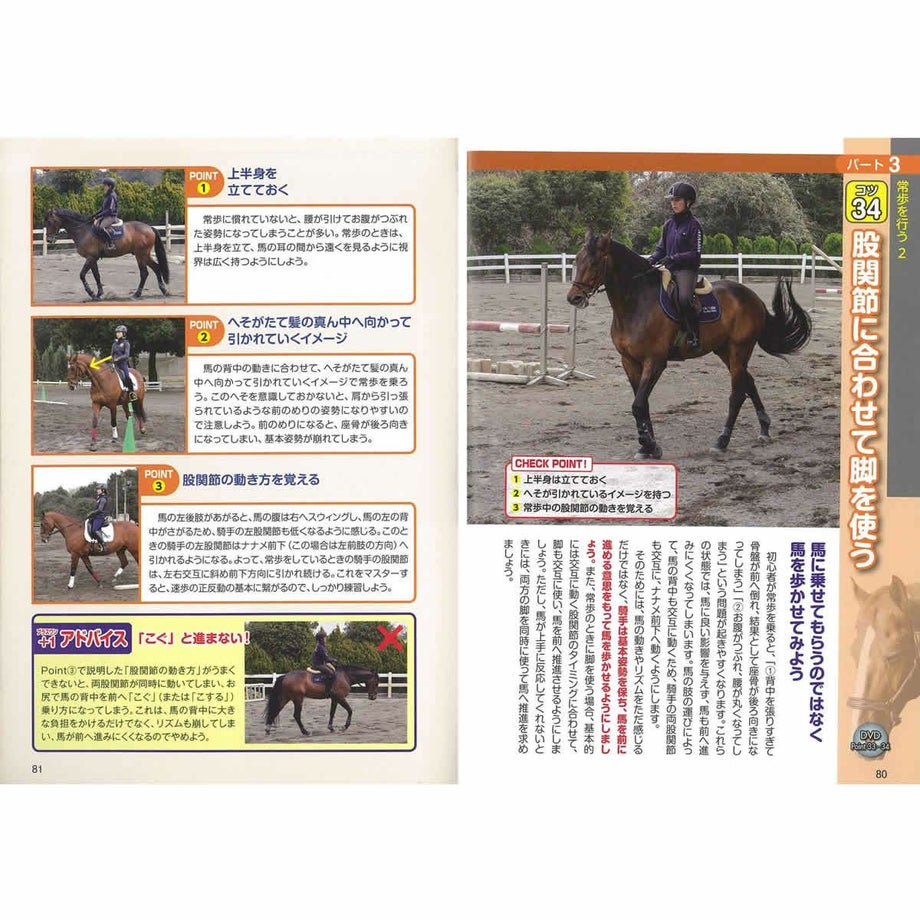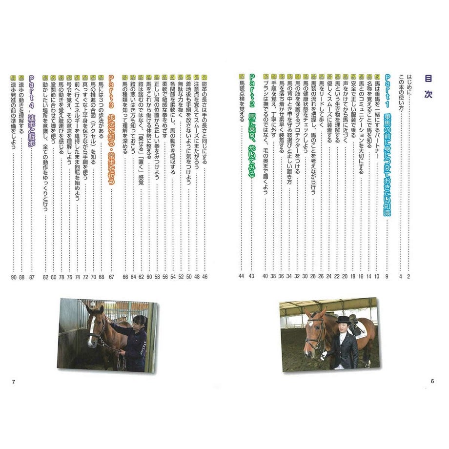 馬の特性・馬装の方法などの基本から、常歩・速歩・駈歩の上達法、ワンランク上の図形運動まで!心を通わせながら上手に乗りこなすポイントを、写真と動画でわかりやすく紹介します。◆◇◆乗馬は、「馬」という生きた動物とともに楽しむスポーツです。決して、ただの乗り物ではありません。馬にも感情があり、そして個性があります。嫌なことや無理な要求には従いませんし、天気や季節、物音などで体調や精神状態が変わってきます。馬は生きているのです。力づくで動かそうと思わないでください。乗馬では、人と馬とが上手にコミュニケーションをとることで、はじめて上達します。道具ではないということを忘れずに、レッスンを行って欲しいと強く思います。そして、レッスンの前後に馬と接して、馬とよりよい関係を築いてください。馬を自由にコントロールするためには、騎手からの一方的な命令ではなく、馬と騎手とのお互いのコンタクトが必要です。だからこそ、馬とのコミュニケーションを密にし、常に馬の動きを感じ取ることが大切なのです。この本では、乗馬のレッスンを充実させるためのポイントを50紹介しています。馬についての知識に始まり、一般的な乗り方である常歩、速歩、駈歩、さらに図形の描き方まで、乗馬が上達するための知識を順序立てて説明しています。付属のDVDと合わせて見ることで、より理解を深めることができます。今回、この本で紹介した技術は、乗馬の入り口にすぎません。乗馬の技術を習得することで、その先にさまざまな競技が広がります。技術をマスターするだけでなく、馬とともに時を楽しむことを念頭に、乗馬を楽しんでください。◆◇◆ 主な目次 ◆◇◆☆ Part1乗馬の前に身につけておきたい知識* コツ01馬は乗馬を一緒にするパートナー* コツ02名称を覚えることで馬を知る・・・など全15項目☆ Part2馬に乗り、歩いてみる* コツ16馬装点検を覚える* コツ17鐙革の長さは手の長さと同じにする・・・など全11項目☆ Part3歩数を知る・常歩を行う* コツ28馬には3つの歩法がある* コツ29馬の推進の合図(アクセル)を知る・・・など全8項目☆ Part4速歩と駈歩* コツ36速歩の動きを理解する・・・など全11項目* コラム 馬の毛色を知る☆ Part5レベルアップの歩法に挑戦* コツ47巻乗りの入口と出口が同じ地点になるようにする* コツ48馬の体勢が変わることに気をつけよう・・・など全4項目* 乗馬用語インデックス* 全国乗馬倶楽部振興協会登録乗馬クラブ一覧・監修 全国乗馬倶楽部振興協会・サイズ A5判・出版社 メイツ出版・ページ数 128ページ・DVD付き監修:全国乗馬倶楽部振興協会1991年に設立。全国の乗馬クラブの情報を統括し、各クラブとのネットワークづくりを担う団体。乗馬の普及のための施設の向上(優良乗馬クラブ認定制度)やインストラクター指導員の養成、調教の行き届いた馬作り、馬術の技能認定制度、競技会の開催など幅広く活動を行う。対外的に乗馬の楽しさを広めてアピールするために、雑誌などメディアへの広告や宣伝も担っている。北海道から沖縄まで、加入乗馬クラブは276(令和2020年1月現在)。