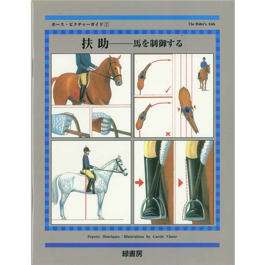 本場イギリスのライディング・テキストの日本語版。ホースピクチャーガイドシリーズ 第2巻「扶助~馬を制御する」正しい騎乗姿勢や扶助を詳しく解説しています。馬が言うことを聞いてくれないと悩み始めたときの教科書。・監修:渡辺 弘/楠瀬 良・B5判変型: カラー24ページ ・出版社:緑書房・出版日:1996年10月【内容】はじめに■馬を理解する■馬体の敏感な部位■騎手の姿勢■体重■声による指示■初心者の基本扶助■人工的扶助■高度な扶助■馬の屈曲■駈歩の扶助■回転と輪乗り■前肢旋回■肩を内へ■まとめ