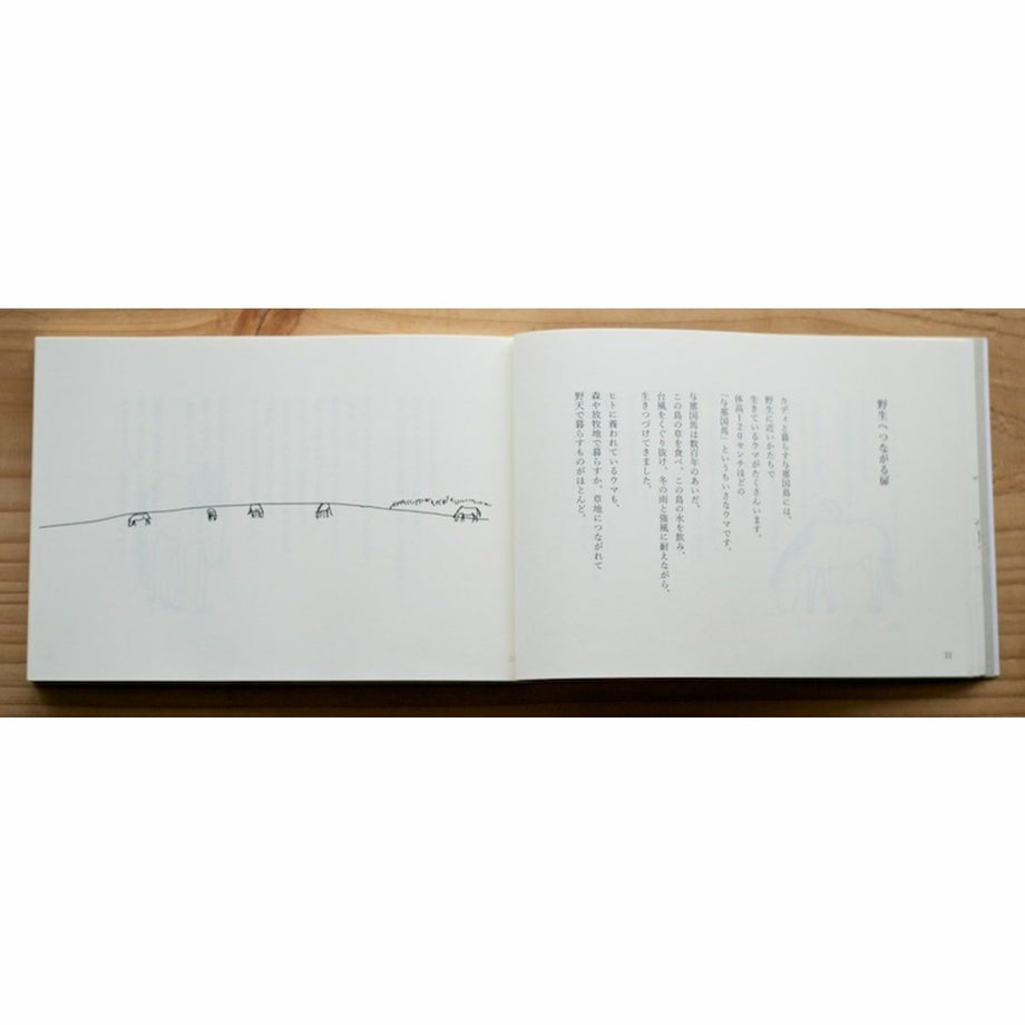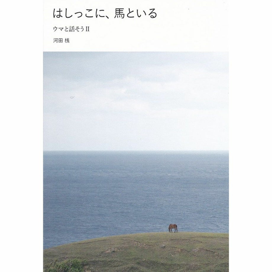 『馬語手帖』の続編は、ずいぶんへんてこな本になりました。「ウマとヒトのコミュニケーション」についての本、であることはたしかなのですが、これまでの「ヒトとウマの常識」からは、だいぶかけ離れているかもしれません。身体的に力がなかったり、ウマに対して強く接することが苦手だったり、という、ある意味では「弱い」部分を持ったヒトが、ウマとコミュニケーションを取るためにはどうしたらよいかを考えていく本、と言ったらいいでしょうか。与那国島の自然の中で、相棒のウマと暮らしているうちに見えてきた、これまでとはちがうコミュニケーションの形について、とても個人的な視点から書いています。ヒトが答えを決めて、それに添うようウマに動いてもらうのではなく、ウマの話に耳を傾けながら、一緒に考え、一緒に答えを探していく、静かなコミュニケーションです。強くならずとも、ウマとつきあうことはできますよ、そこにはものすごく豊かな世界が広がっていますよ、と、だれかに伝えたくて、この本を作ったのかもしれません。横長の本です。本棚などに収納しやすいよう、縦長のケースをおつけしています。この本は、孔版印刷という、すこしアナログな方法で印刷しています。表紙は、黒と青の版をそれぞれ作り重ねて印刷しているので、微妙にずれていることがあります。そのため、一冊ごとに、ほんのすこしずつ本の表情がちがうかもしれません。・出版社: カディブックス・文と絵:河田桟・編集とデザイン:賀内麻由子・サイズ:B6変型判 232ページ
