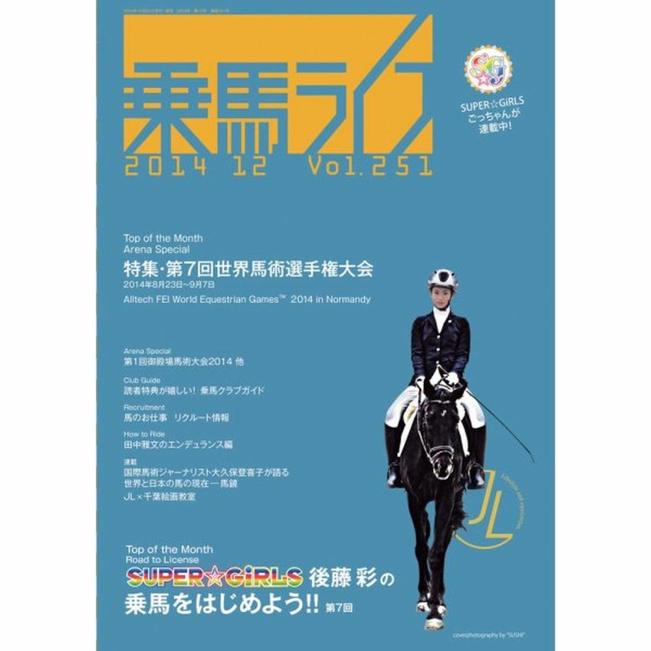馬に係わるすべての人に贈る総合情報誌。馬が好き!乗馬を始める、楽しむ情報マガジンです。・サイズ A4判・出版社 メトロポリタンプレス【内容】■Top of the Month■ Road to License● SUPER☆GiRLS 後藤彩の乗馬を始めよう!! ♯7 今回の「SUPER☆GiRLS 後藤 彩 の乗馬をはじめよう!!」では、彩ちゃんが早くも競技会デビュー。まだ実質7鞍程度しか経験していない彩ちゃんだが、出場した第1回御殿場馬場馬術競技会2014のエンジョイドレッサージュ課目で、見事3位に入賞。その模様をお届けする。■Score Board & Arena Special●全国各地の競技会結果発表●Overseas Riders―海外で活躍する日本人ライダー情報 海外で競技会に出場する日本人馬術家たちの競技会情報をお届けするこのコーナー。現在、多くの選手たちが海外で活動している。今回は2014年9月~10月上旬分の競技結果を掲載する。また合わせて第7回世界馬術選手権ノルマンディー大会と第17回アジア競技大会(仁川)馬術競技の上位成績を掲載する。●Arena Special 1Normandy WEG 2014ー第7回世界馬術選手権ノルマンディー大会 2014年8月23日~9月7日 Alltech FEI World Equestrian Games ? 2014 in Normandy フランス・ノルマンディー地方で第7回世界馬術選手権大会が開催された。「世界最高レベル」がどんどん更新されているのを目の当たりにした最高の舞台であった。いったい馬術は、どこまで進化するのか……。競技ばかりでなく、目を見張るようなエンターテインメントもありの大興行で、観客総数56万5,000人を数えた。●Arena Special 2 The 4th West Japan Championship 2014ー第4回WSJチャンピオンシップ2014 足早に過ぎ去ってしまった短い夏。日本列島は今、秋の盛りである。そんな中で、第4回目を迎えるWJC 2014が開幕した福岡県馬術競技場だけは、真っ盛りの夏を思わせるような熱い闘いが展開された。その模様をレポートする。(選手名敬称略)●Arena Special 3 第1回御殿場馬術大会2014 日程:2014年10月4日~10月5日 会場:御殿場市馬術・スポーツセンター 御殿場市馬術・スポーツセンターで行なわれた第1回御殿場馬術大会2014の模様(初日)をお届けする。初心者から参加できる種目が揃っており、馬場では馬場L1課目、障害では中障害Cクラスまでとかなり幅広い層が対象となる競技会だ。(文中選手名敬称略)■Family●CHIBA ART KIDS GALLERY ♯6「馬を立体的に学ぶ」 JL×千葉絵画教室の「馬を立体的に学ぶ」をテーマとした第4弾。「立体的に」は今回がラストになります。今回はこれまでの絵画とは趣向を変えて、立体的な模型(粘土細工など)の工作しました。子どもたちの素晴らしい作品を紹介します。■Cartoon●マチコーほのぼの常足ライフ■Column●乙女たちのグランギャロー「ナポレオンの栄光を今に……」●あの馬を訪ねてーフェイトフルウォー●馬鏡 Tokiko’s opera glasses■How to Ride●田中雅文 エンデュランス編ーエンデュランスライダーの体力作り⑨ほか