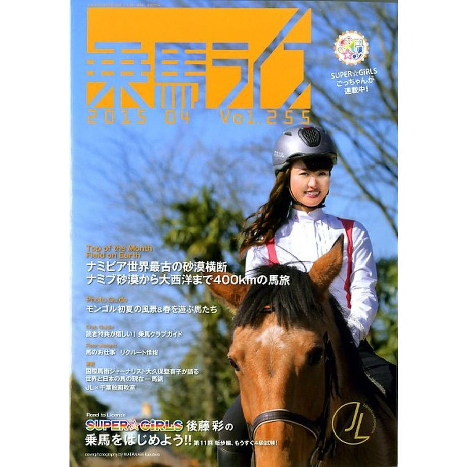 馬に係わるすべての人に贈る総合情報誌。馬が好き!乗馬を始める、楽しむ情報マガジンです。・サイズ A4判・出版社 メトロポリタンプレス【内容】■Top of the Month■Road to License●SUPER☆GiRLS 後藤彩の乗馬を始めよう!! ♯11 今回の「SUPER☆GiRLS 後藤 彩 の乗馬をはじめよう!!」も駈歩編。前号で初めての駈歩レッスンの模様をお届けしたが、前回のレッスンから2週間後、さっそく単独での駈歩にチャレンジした。■Field on Earth●ナミビアー世界最古の砂漠横断 ナミブ砂漠から大西洋まで400kmの馬旅 地球誕生の姿が残る、地球最古の砂漠・ナミビア。人はおらず、民家はない。水道もない。宿泊は野外キャンプ。世界でも数少ないとされるこの”最後の楽園”を馬ととももに冒険したあかつきには、一体どんな感動が待っているのだろうか。■Photo Guide Spring●春はすべての命が、光り輝く季節 馬たちも、若草萌える草原を奔る!■Photo Guide Early summer●モンゴルー初夏の風景 乗馬ファンの楽しみのひとつに、海外での外乗がある。特にモンゴルでの乗馬は、もはや定番ともいえる人気のツアーだ。見渡す限りの大平原を馬と行くコースに、遊牧民との交流、そしてゲルに宿泊して、満天の夜空の観賞。これらは、決して日本では味わえない、旅の醍醐味だ。そんなモンゴル外乗ツアーにおける初夏のワンシーンを、ひと足先に紹介しよう。■Score Board●全国各地の競技会結果発表 競技会にチャレンジする、全国のライダーのためのスコアボード。今回は、CSI3*KAKEGAWA2015に、自馬で出場する予定の韓国選手団をピックアップ!春はもうすぐそこ。皆様の挑戦を、編集部一同応援しています。競技会結果やリポート、お写真なども募集中です。●つま恋乗馬倶楽部にてCSI3★KAKEGAWAが3月26日( 木)~ 3月29日(日)に開催 韓国選手団が自馬にて出場予定●Overseas Riders 海外で活躍する日本人ライダー情報 海外で競技会に出場する日本人馬術選手たちの競技会情報をお届けするこのコーナー。今回は2014年12月上旬~ 2015年2月上旬分の競技結果を掲載する。また今月も障害・馬場・総合の3種目の世界ランキング上位成績(トップ50および日本人上位成績)を掲載する。■Horse Riding Tour●アジア乗馬体験ツアー①ーカンボジア・アンコールワット 発展途上の熱気にあふれた街、豊かな草原、人気の世界遺産を馬上から楽しむ ■Family●CHIBA ART KIDS GALLERY#10最終回「版画で描き出す馬」 今回のJL×千葉絵画教室のテーマは「版画で描き出す馬」。ドライポイントという技法の版画を使って、子どもたちにさまざまな馬を描いてもらいました。7名7点の作品をお楽しみください。■Column●あの馬を訪ねてーデルタブルース●馬鏡 Tokiko’s opera glassesほか
